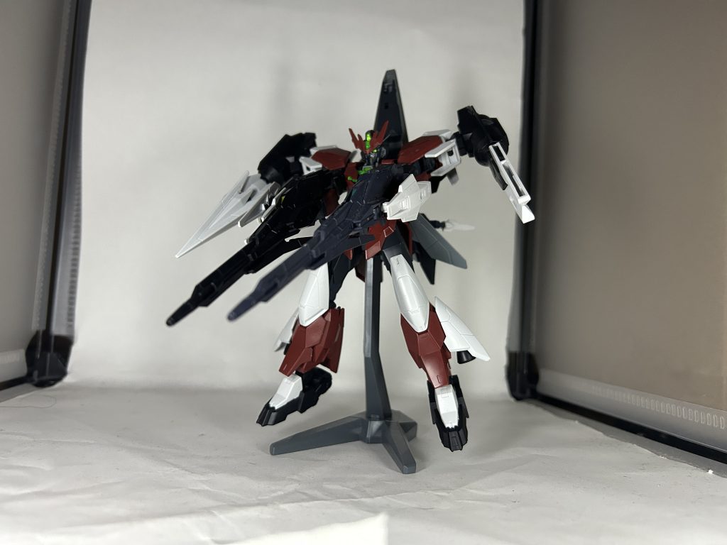 以下、設定です。 素体となるアンゲロス・コアの専用拡張システム「アンゲロスシステム」の先駆けとなった姿。この姿では、攻撃範囲に制限がないとされている。”全領域の使者”となった本機は、戦場であらゆる距離から任務を遂行すると言われている。名前の「アリージェン」は「all」と「region(領域の意)」の造語である。