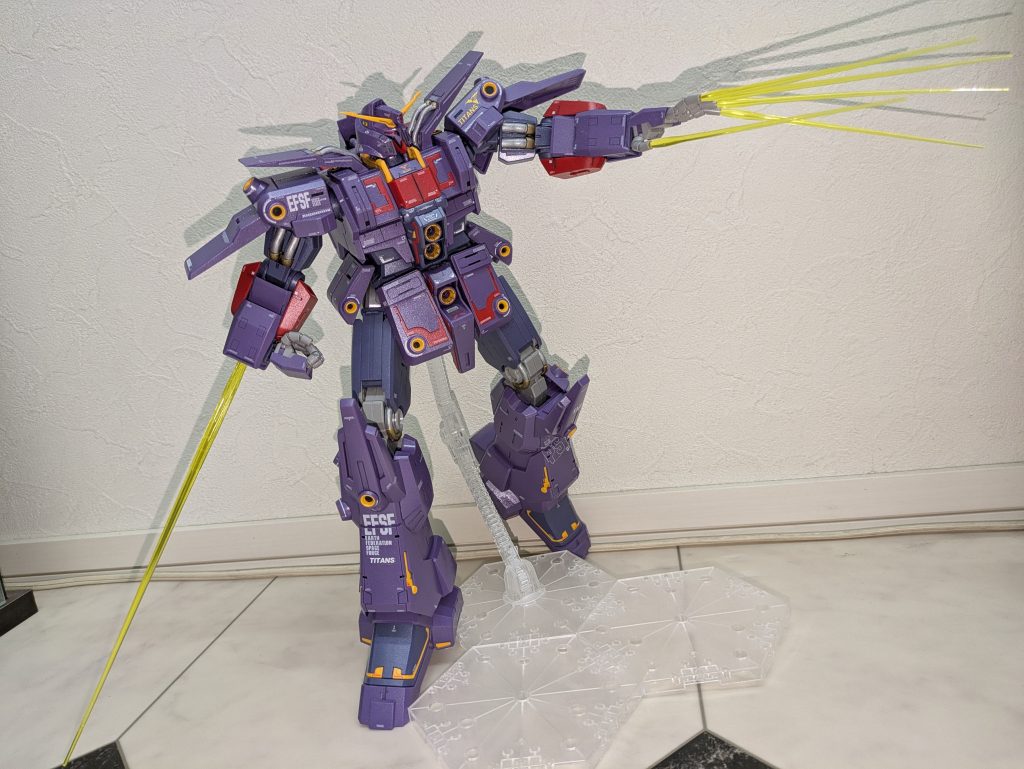 変形する時に足に触りまくる必要がある為、デカール少なめです(gundam-kao10)特に大腿部…