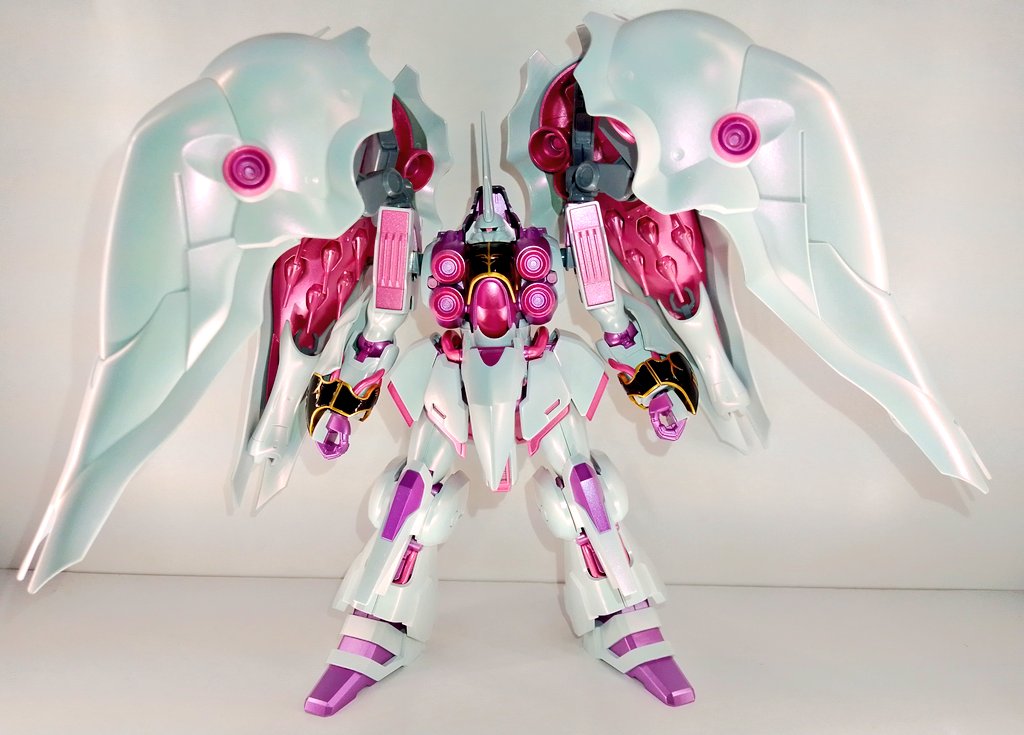 後ろ姿、とても綺麗…蝶の様…HGナイチンゲールで一度このカラー挑戦しましたが自分の腕か無く失敗してしまったので今回成功したのでRE100かHGナイチンゲールどちらかでこのキュベレイカラーまた挑戦してみるかな…