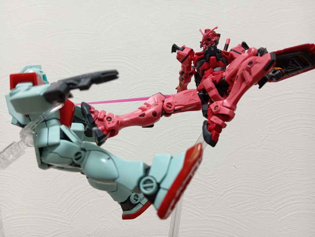 という訳でEGのガンダムからライフルを拝借して構えてみましたが、もしかしてこれはカッコいいのでは…!?