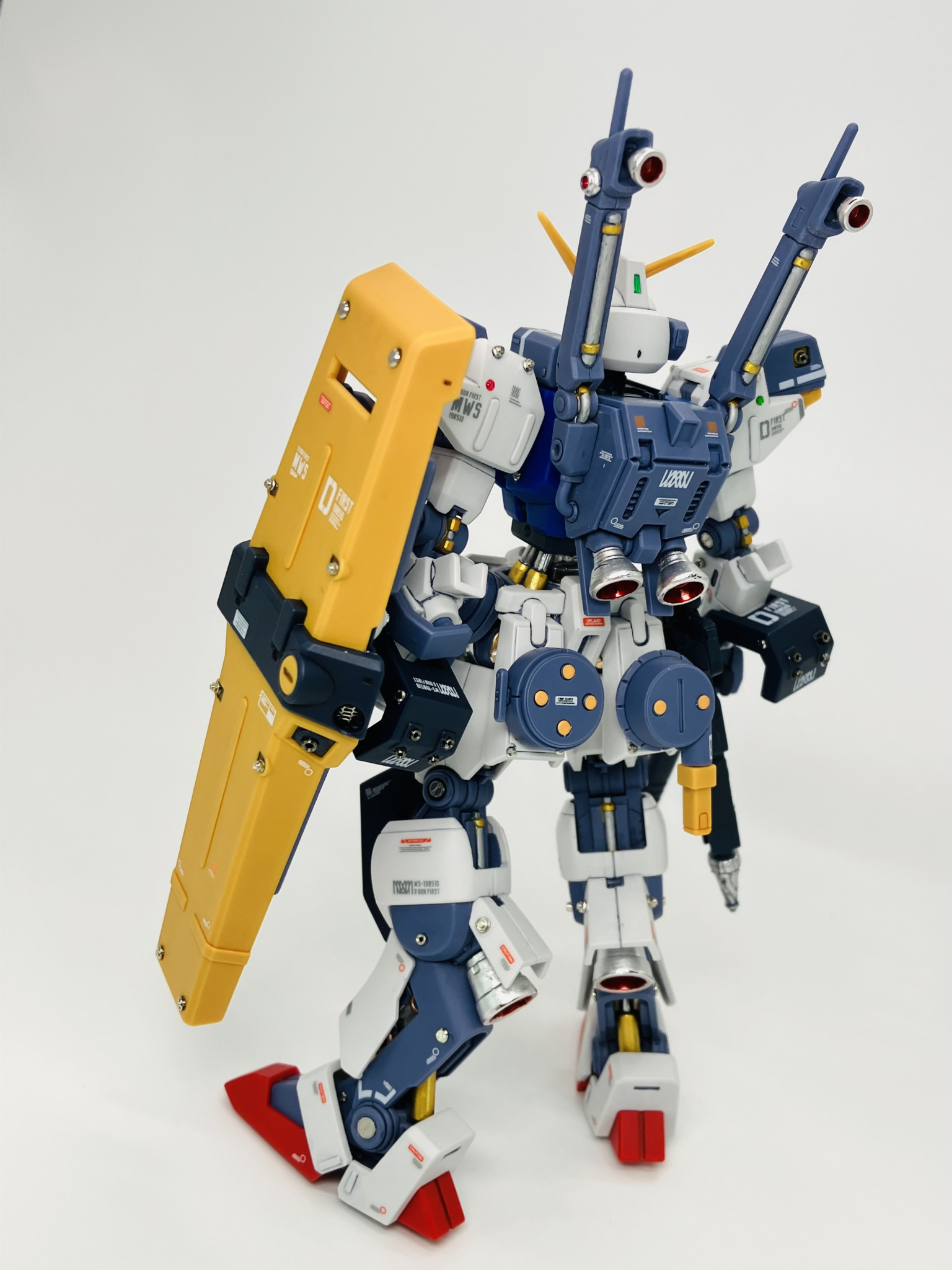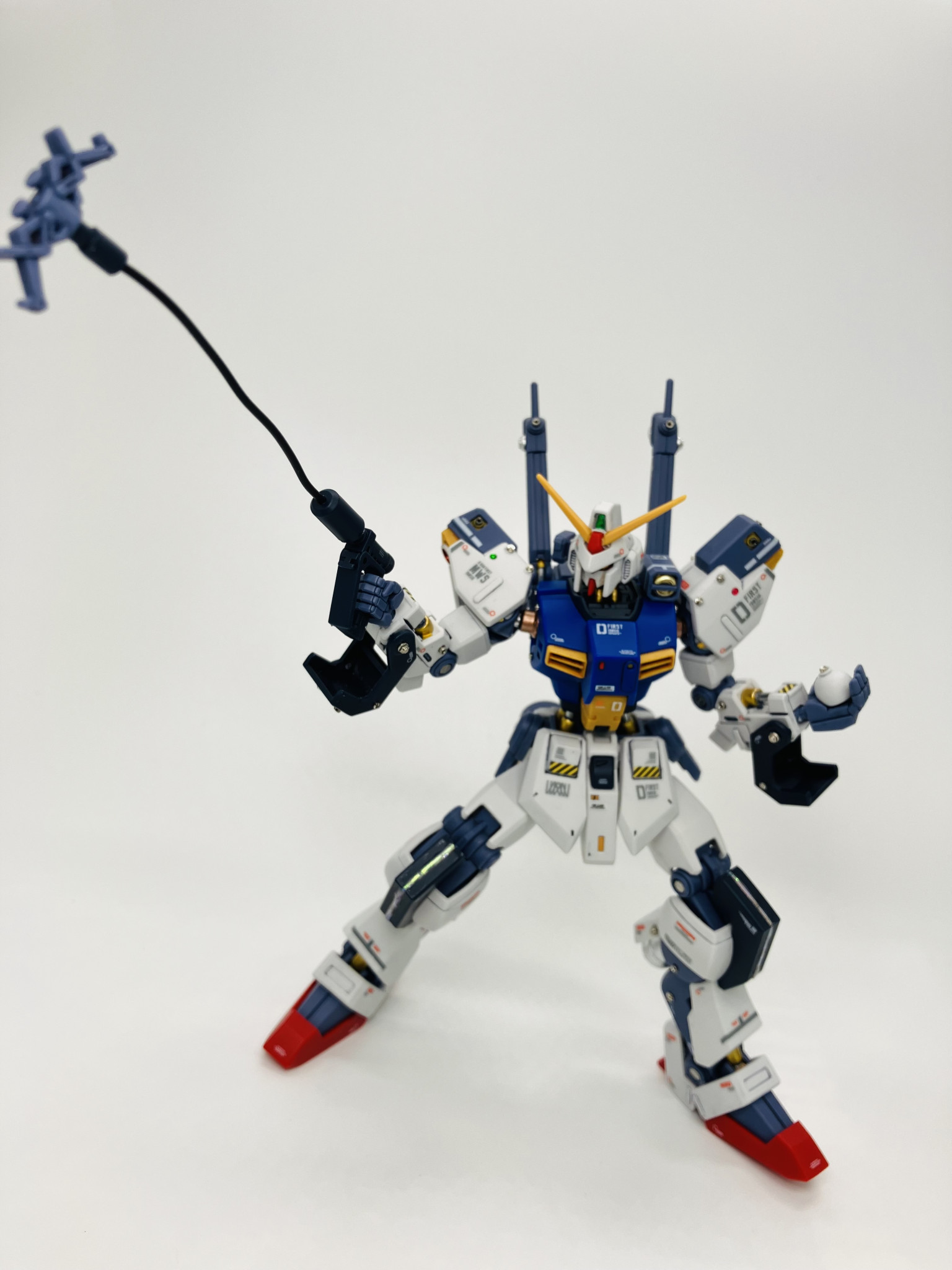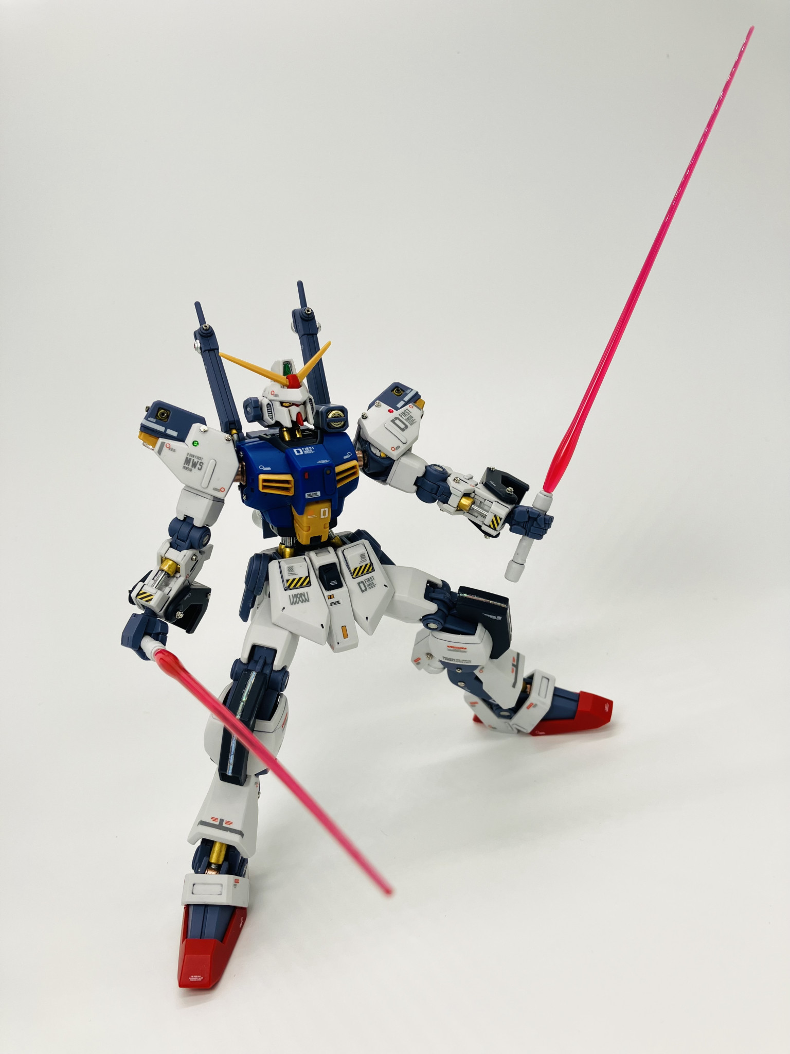 どこか兵器のようなリアルさを垣間見える機体🥳 オデコをイングラムっぽく端に5箇所穴開けましたが失敗し、いつものデカールで装飾、関節ラバーなんかも似合いそうです😉