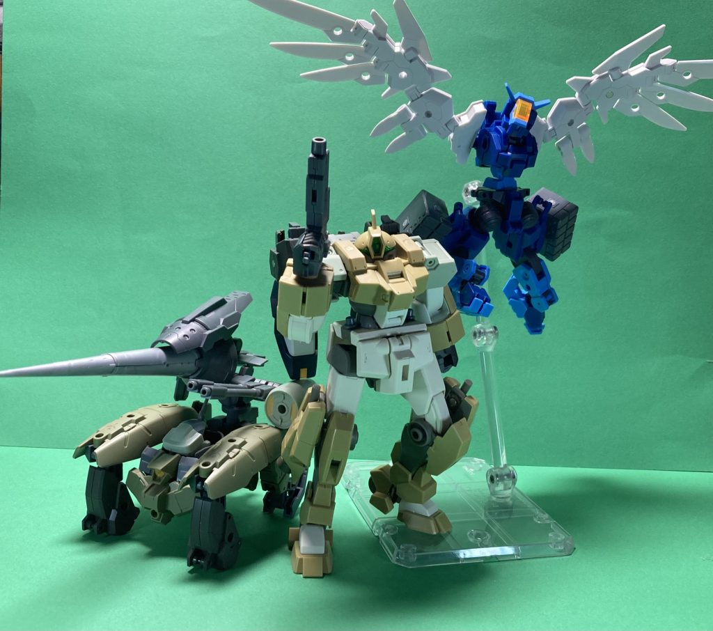 イメージとしては前回のやつを作る前に着手してたプロトタイプガンプラと、1号ロボの追加支援メカとして開発されていた2機が奪われて闇落ちしたら…的な設定で作りました
