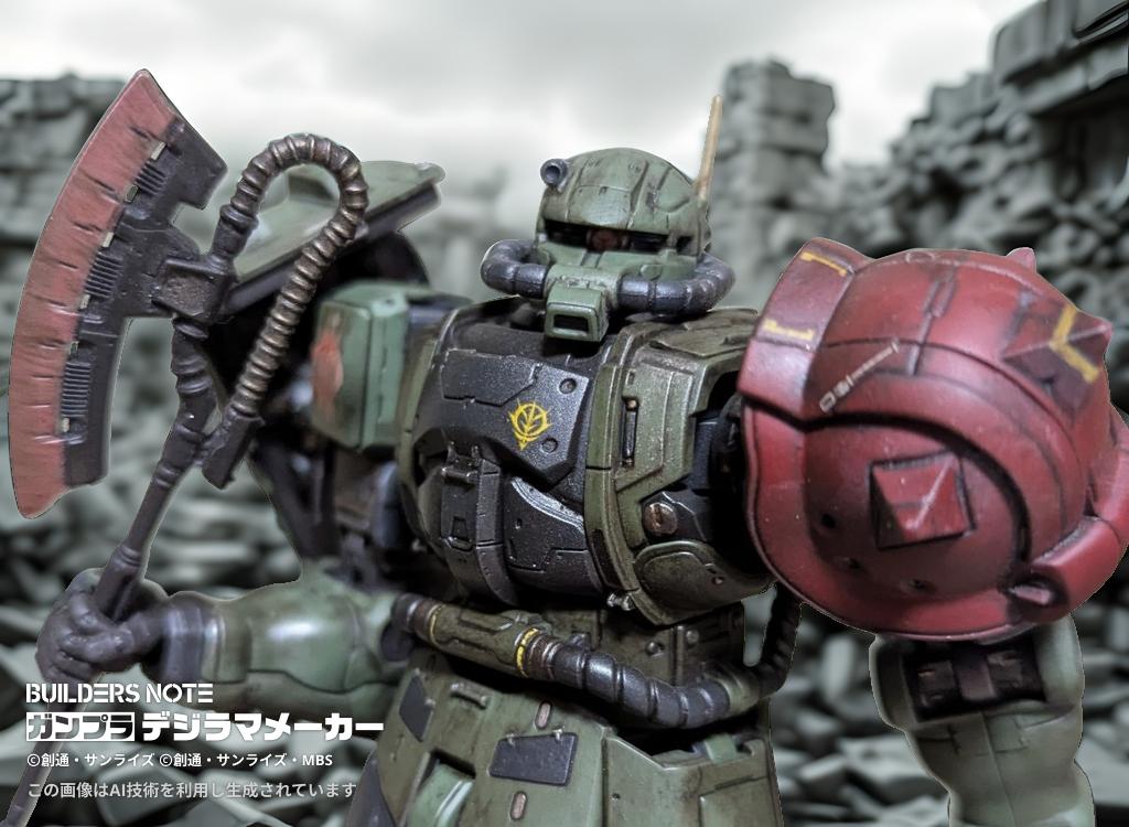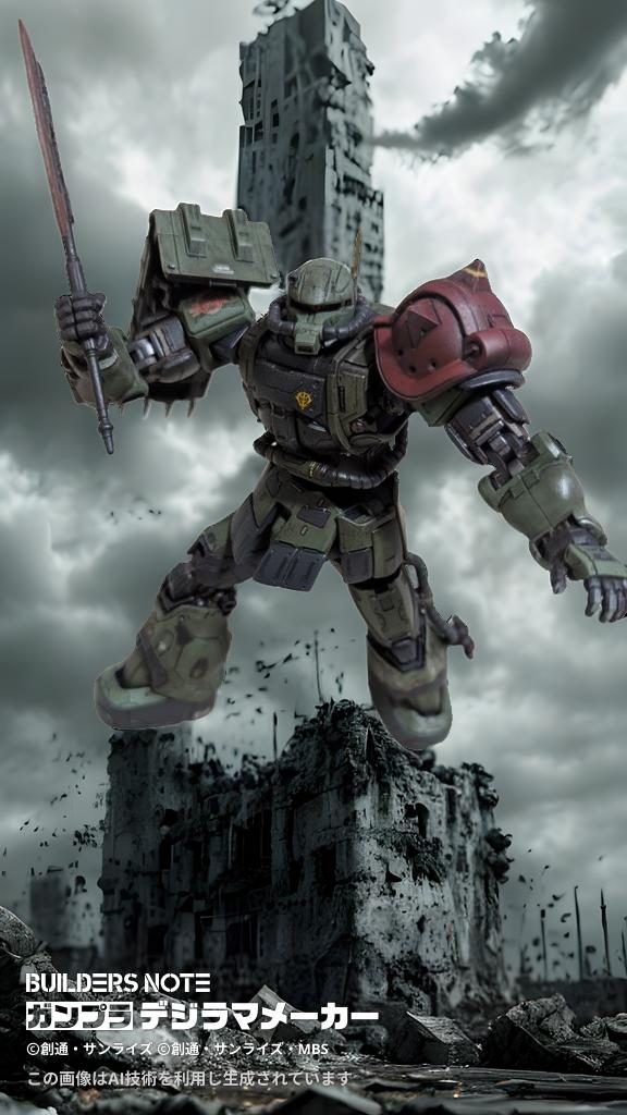 鬼ディテールとウェザリングで良い意味で泥くさい、レクイエムらしいシブイ仕上がりのザクですね😁。デジラマは、戦場というより北斗の拳の世紀末ぽい(笑)😆。