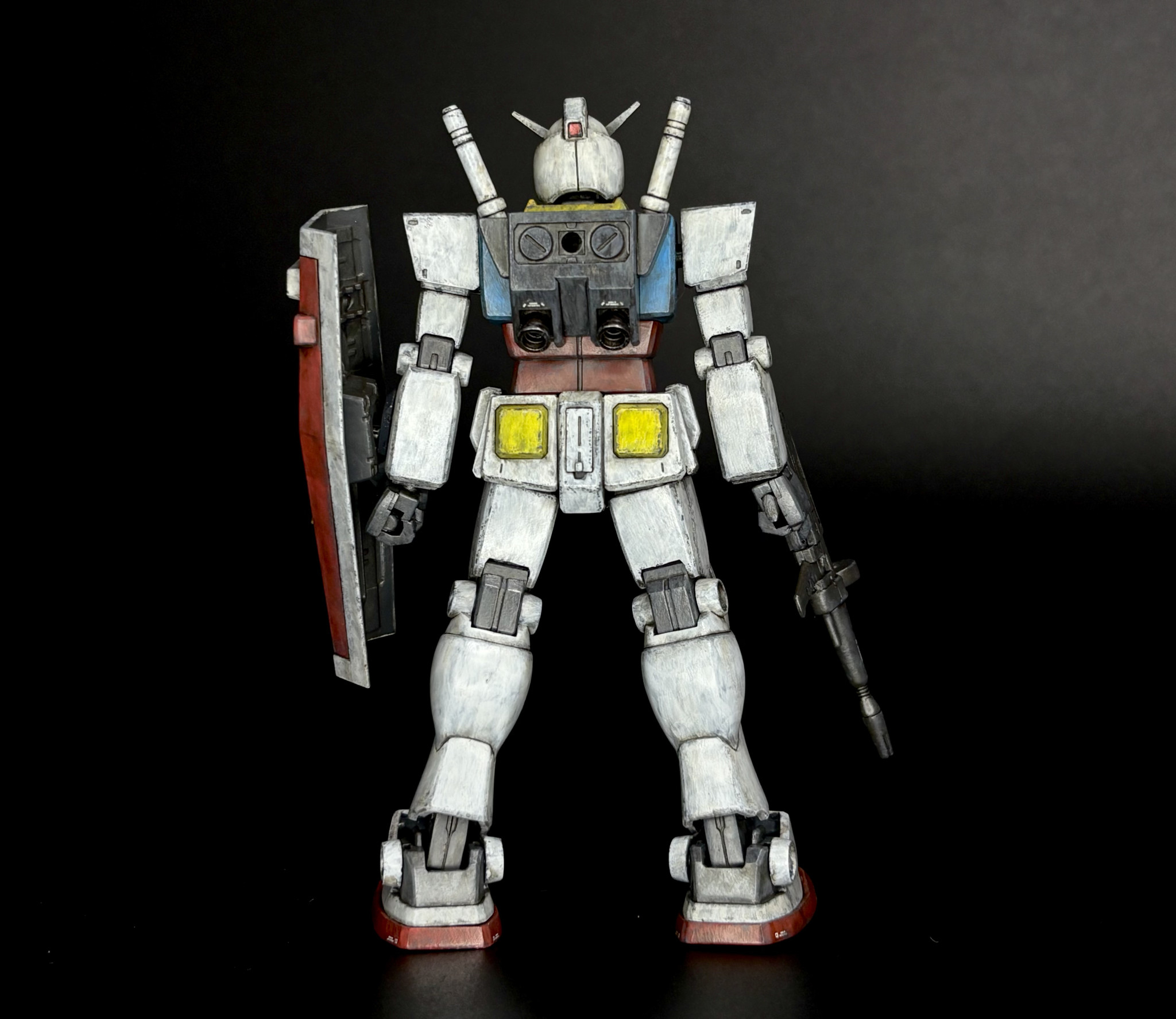V作戦3機製作の大トリ、ガンダム完成しました。旧版のHGUCでV作戦を歴戦の汚し仕上げで揃える今年の目標が成就しました。