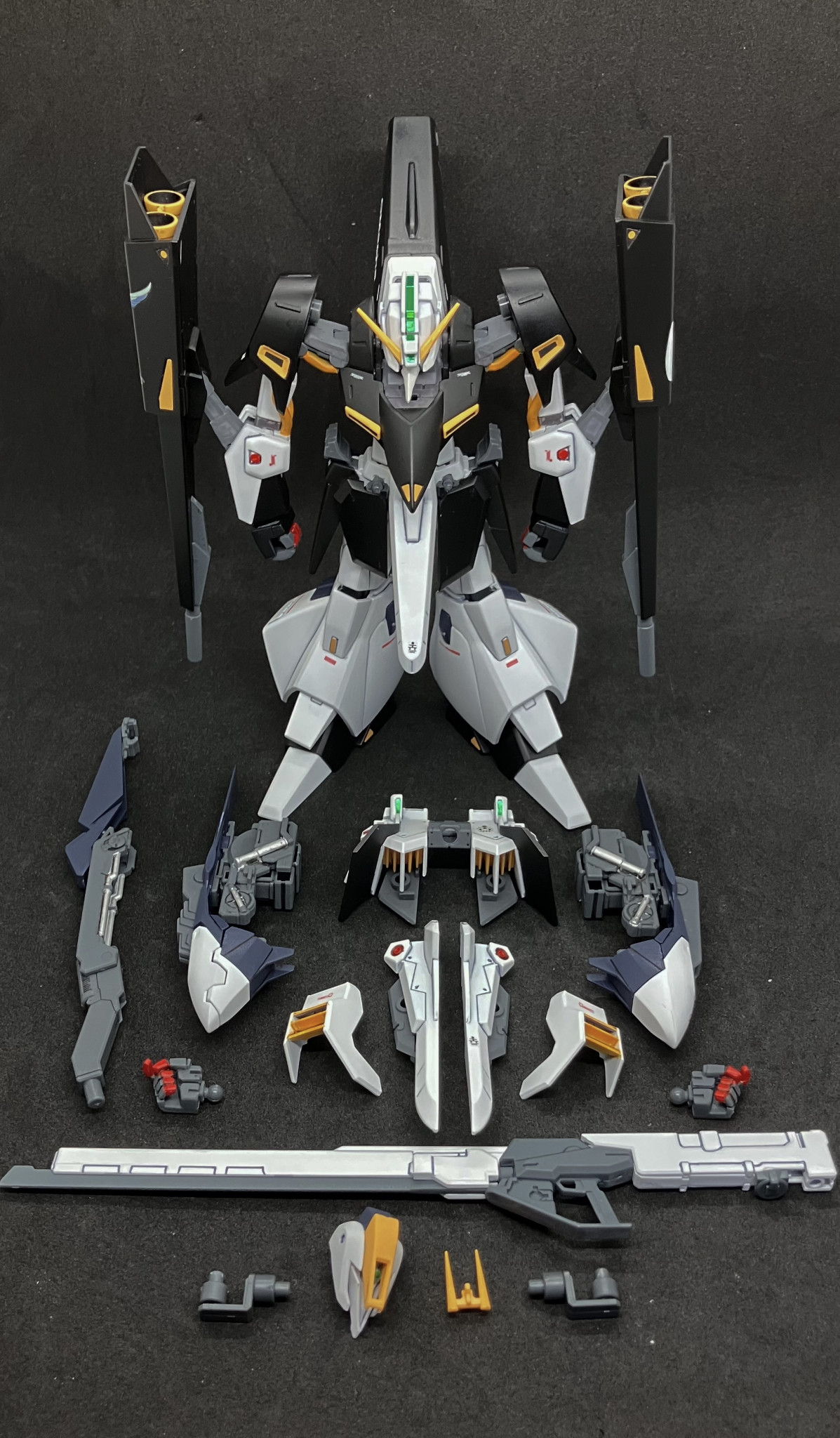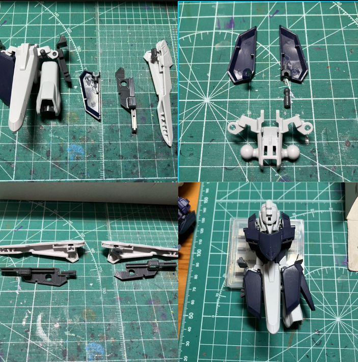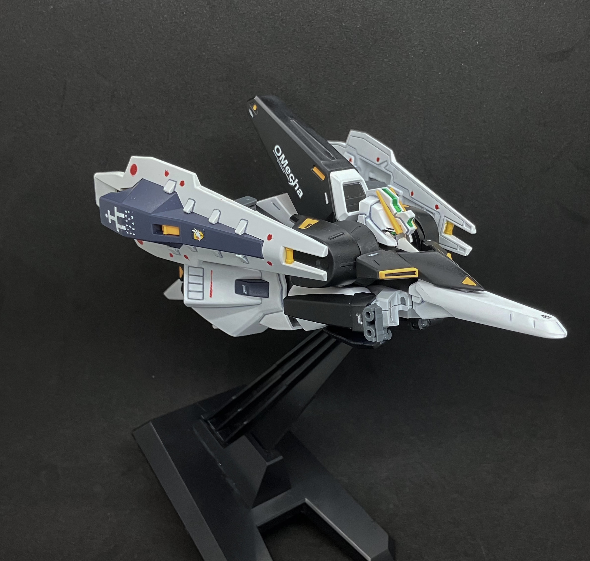 ベースキットであるギャプラン自体が20年以上前に発売された古いキットということもあり、各部の合わせ目消しや後ハメ加工はほぼ必須。流し込み速乾系のセメントよりも樹脂入のセメントを使って乾燥時間を確保した方が望ましいかと思います。