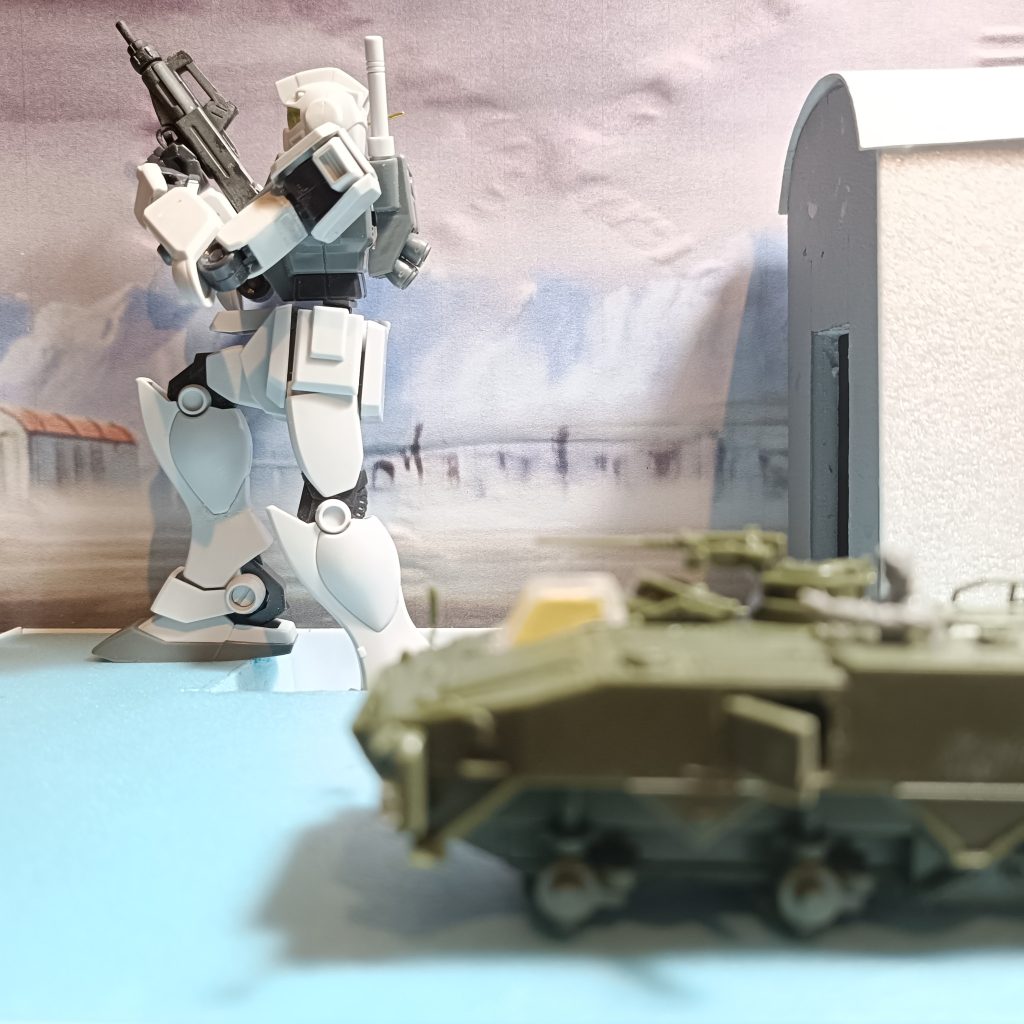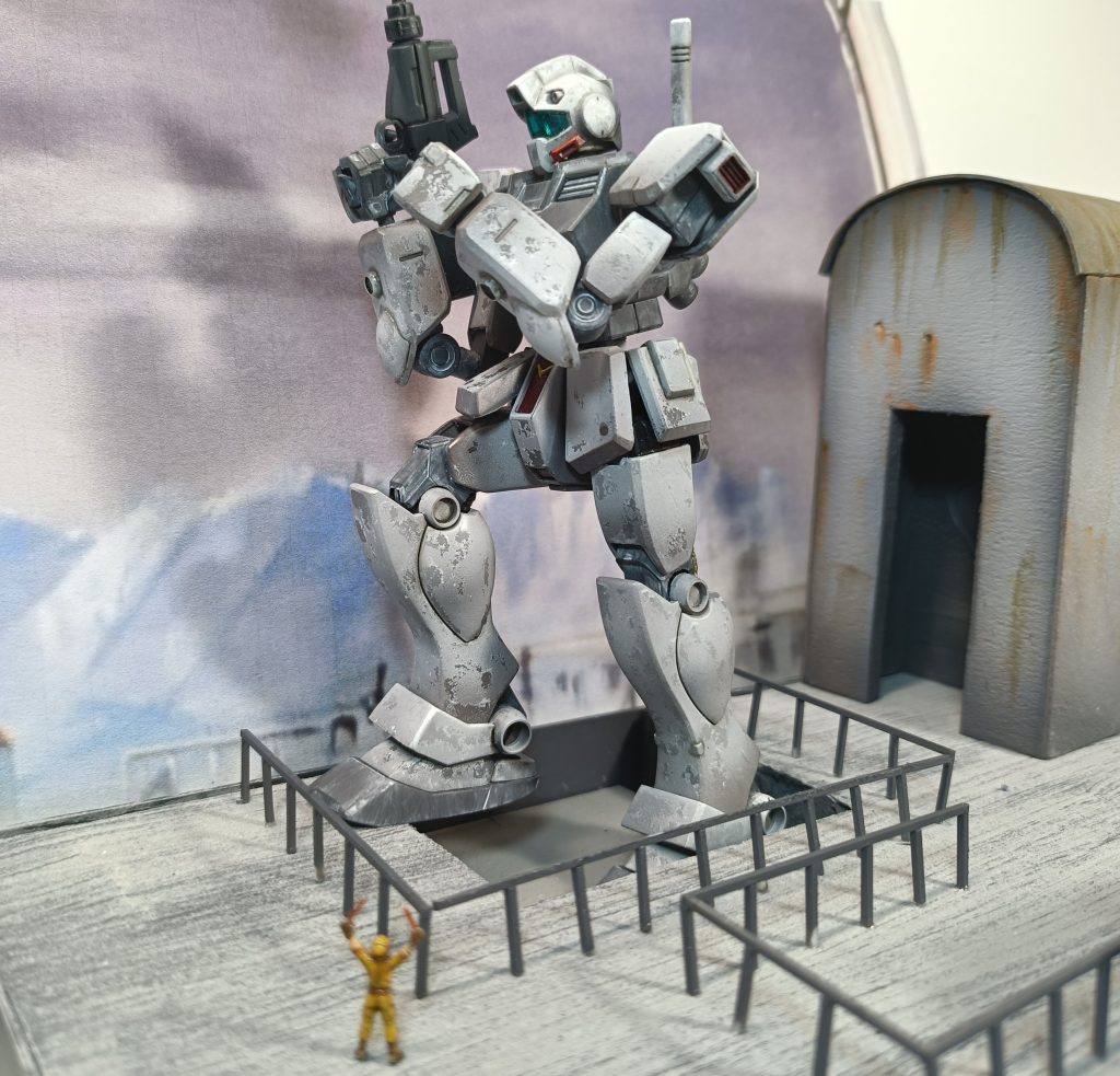 機動戦士ガンダム0080ポケットの中の戦争より、ジム寒冷地仕様を出撃シーンのジオラマを作成しました。