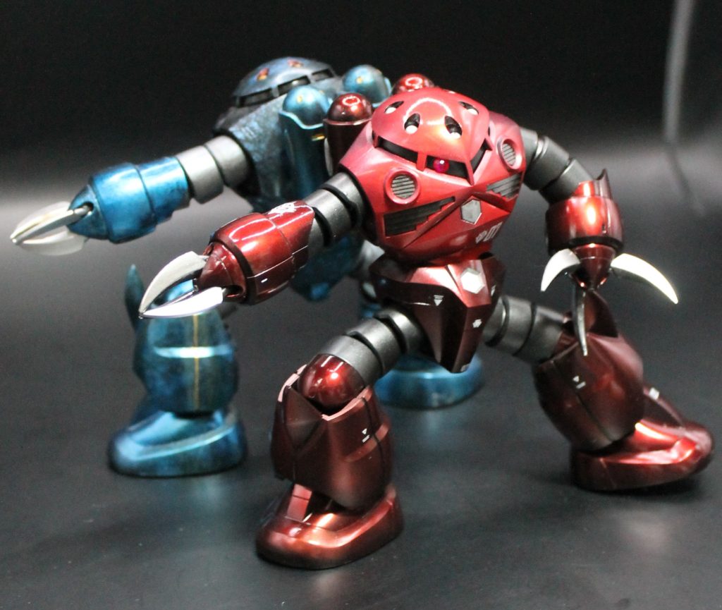 ジオン系のMSはウェザリングも似合いますが、やはり丸っこいのでキャンディ塗装も似合うようです。