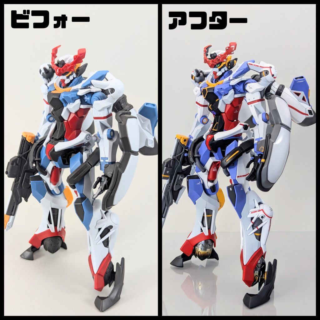 全部設定通りでは無く、青は設定画の色みは個人的に好みじゃなかったので、いつもの青にし、ところどころメタリックアイアン色にしたり、足首のバーニアは焼け色塗装してみたりしました(gundam-kao3)