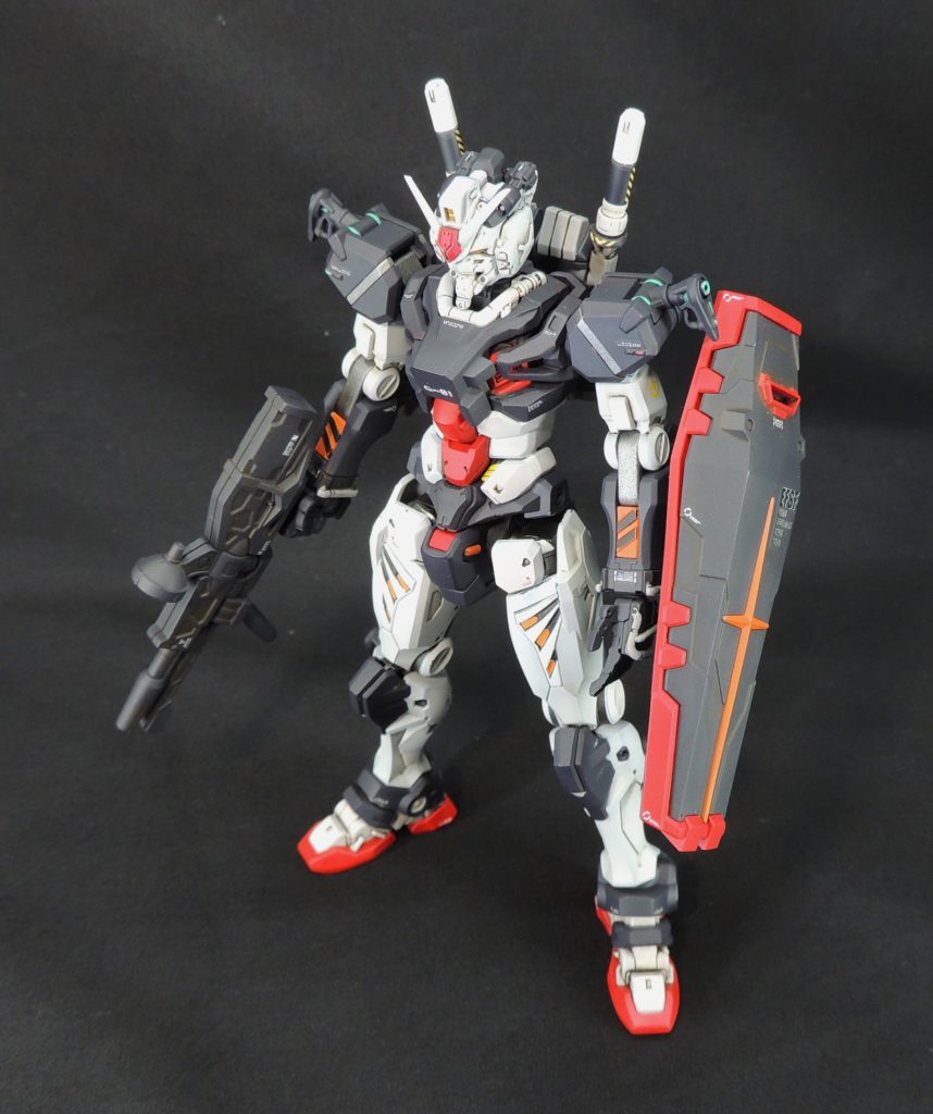 自作の首パーツを使用することにより、適切な位置で顎を引くことができ、立ち姿が決まるようになりました。また、白いガンダムの頭部とのコンバーチブル仕様にすることもできました。