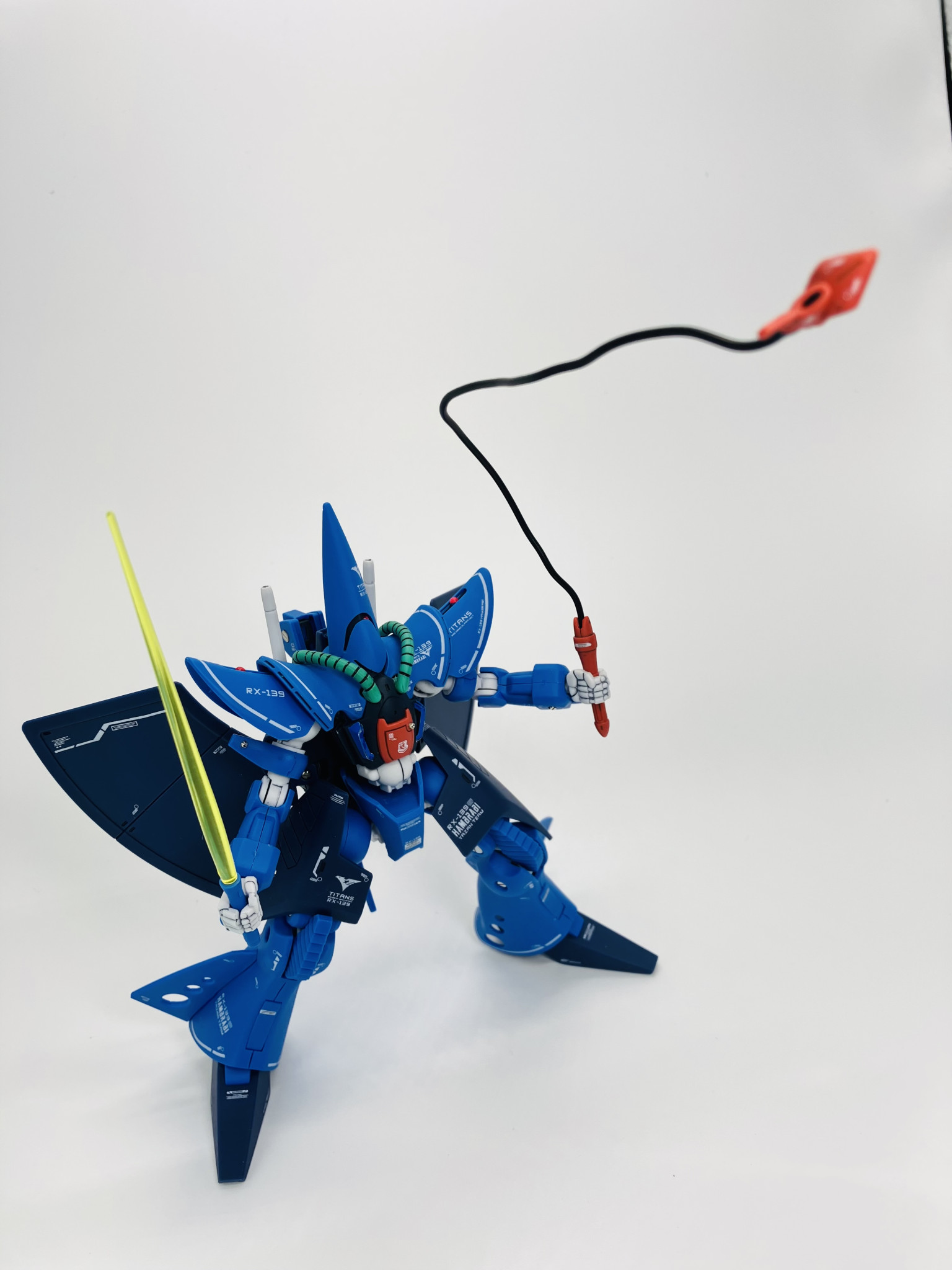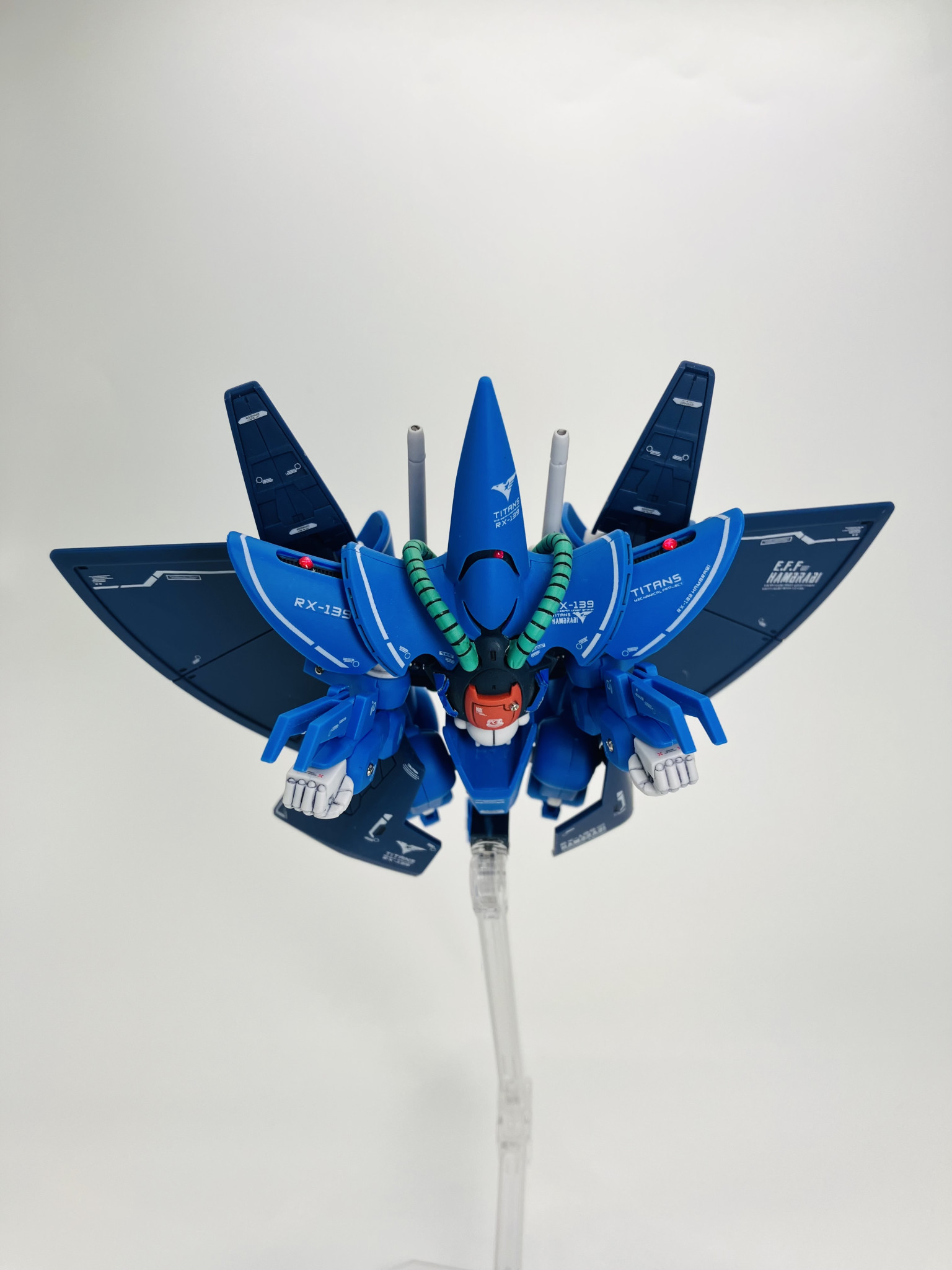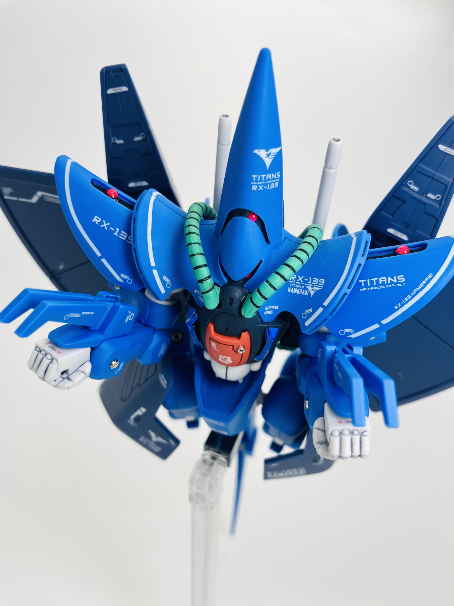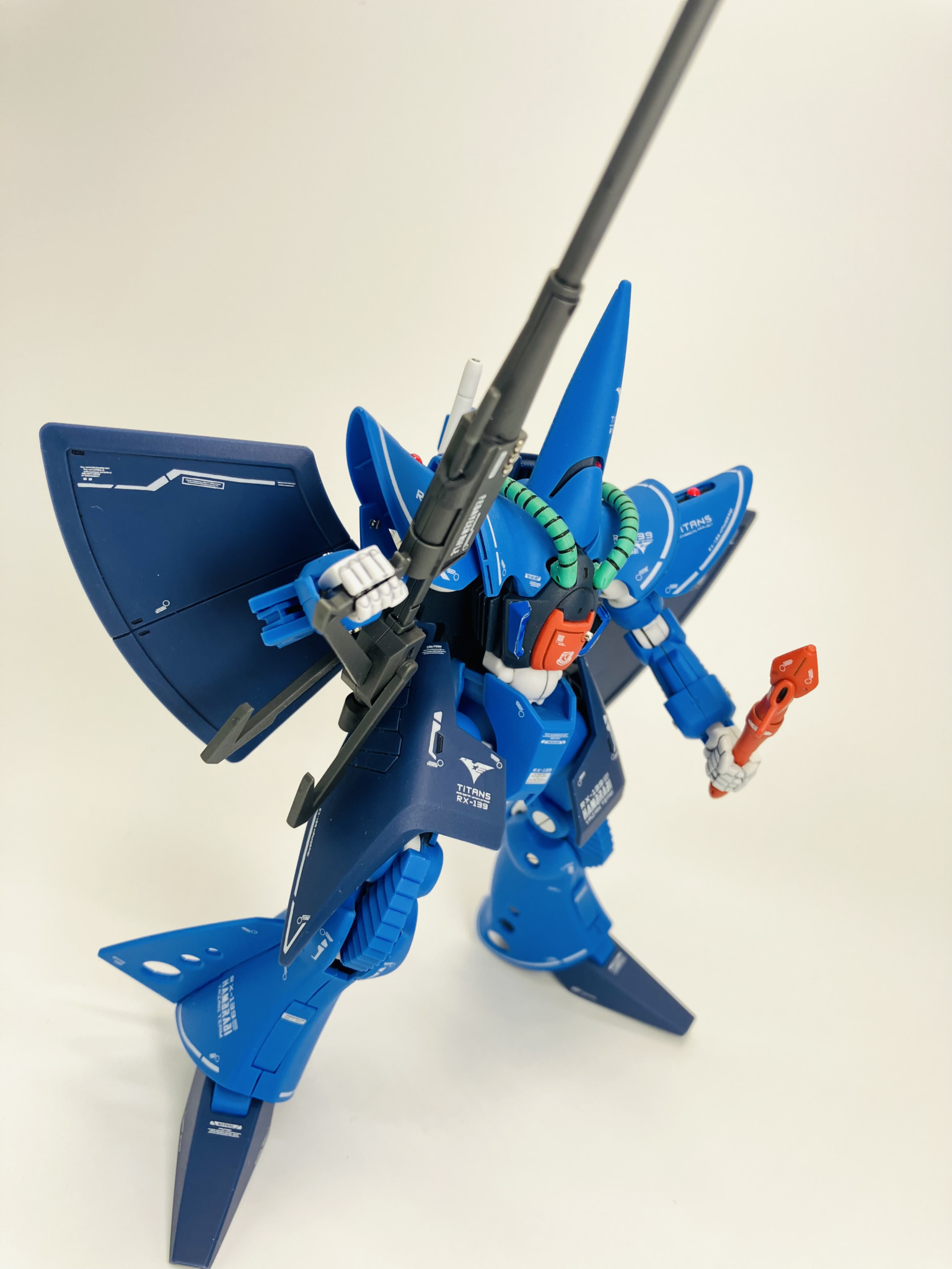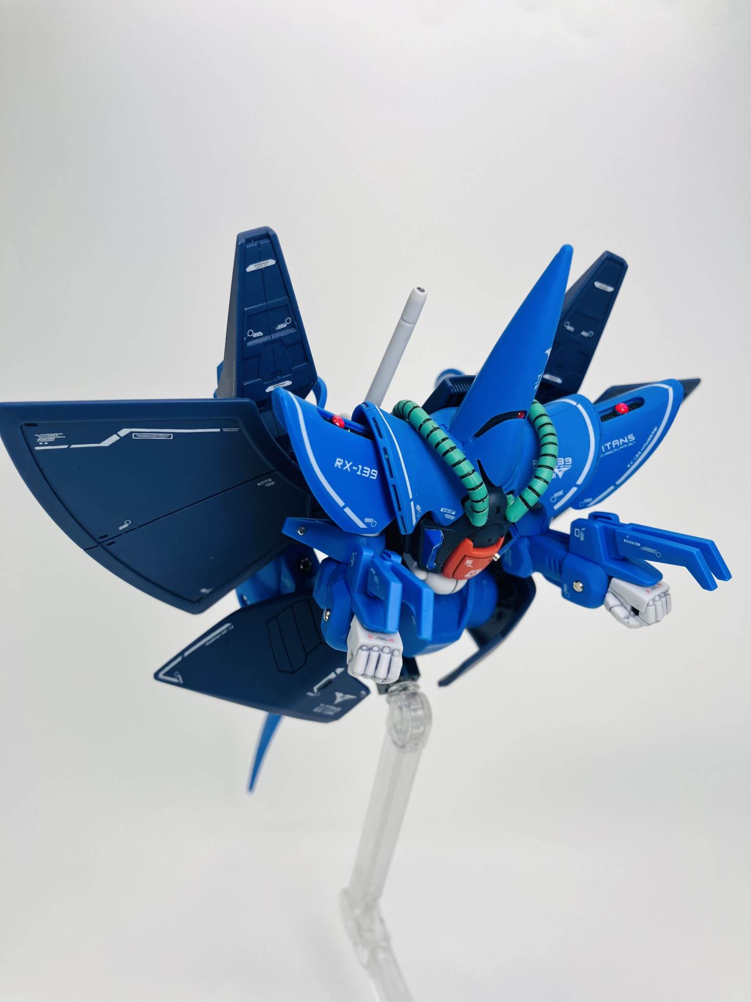 RX-139 ハンブラビ、成形色にスミ入れ、デカールにトップコートの簡単フィニッシュからメタルパーツにレジン液でちょいプラス😉