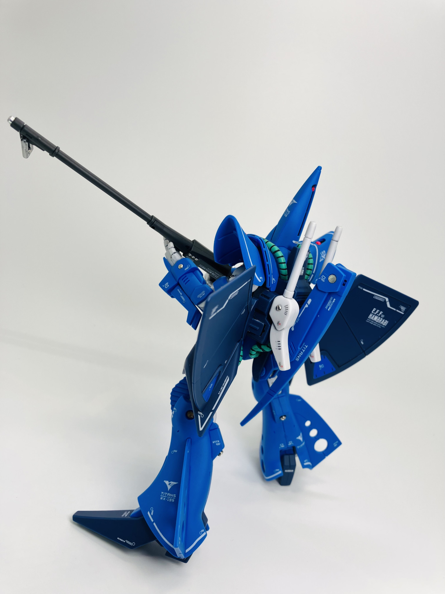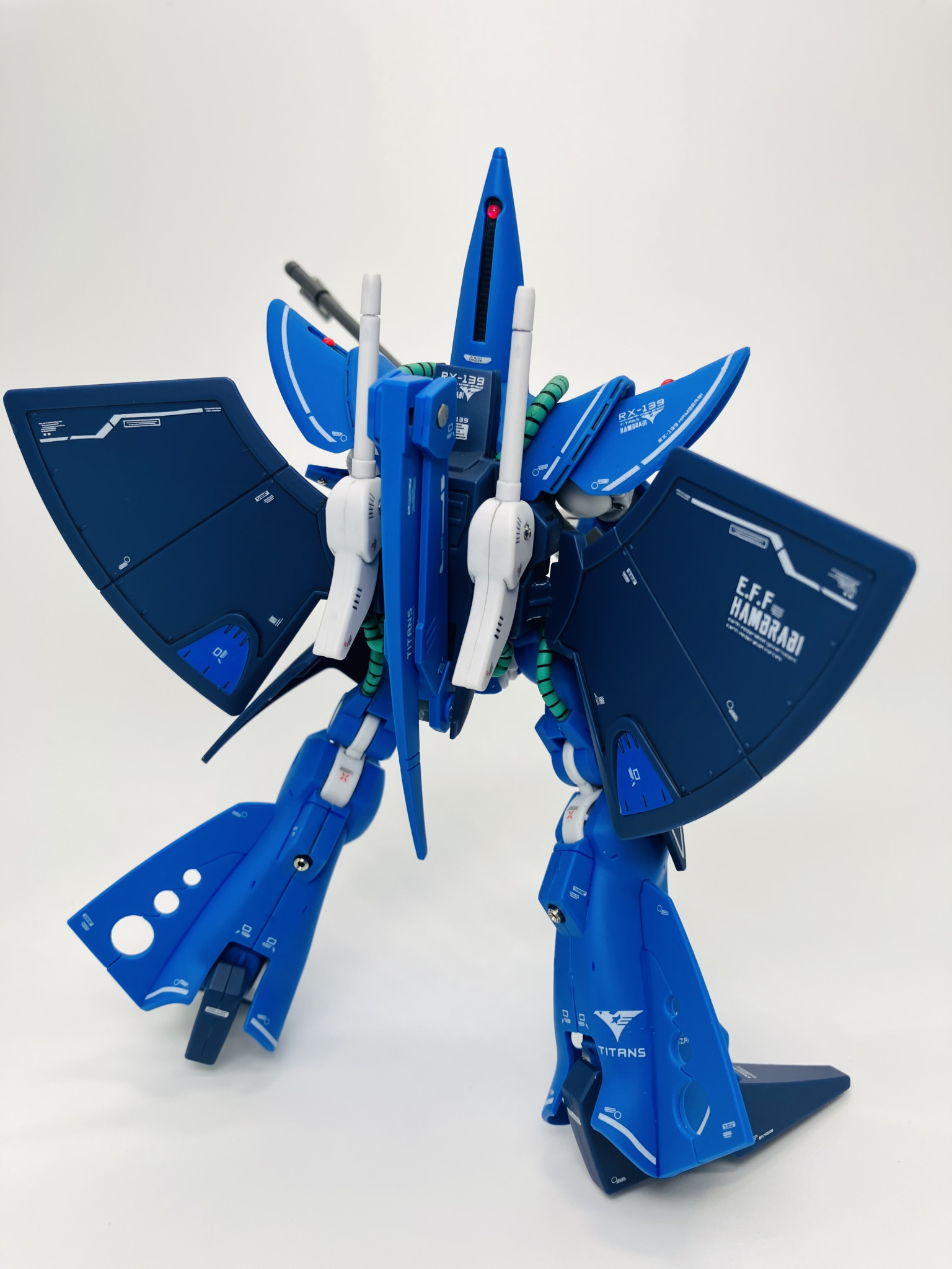 以上、HGハンブラビでした、腹部両サイドの青は付属のシールですが隙間をリタッチしたつもりがかえって目立つ結果に🤣