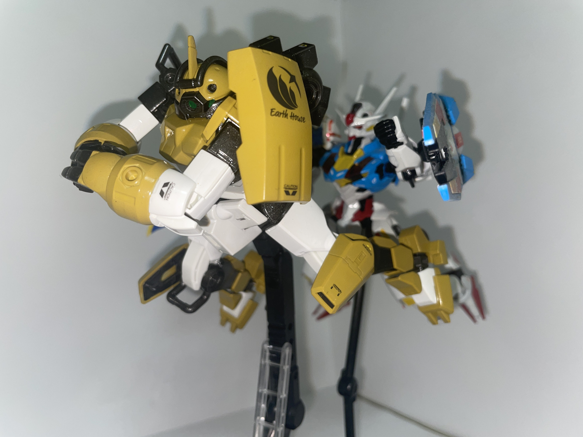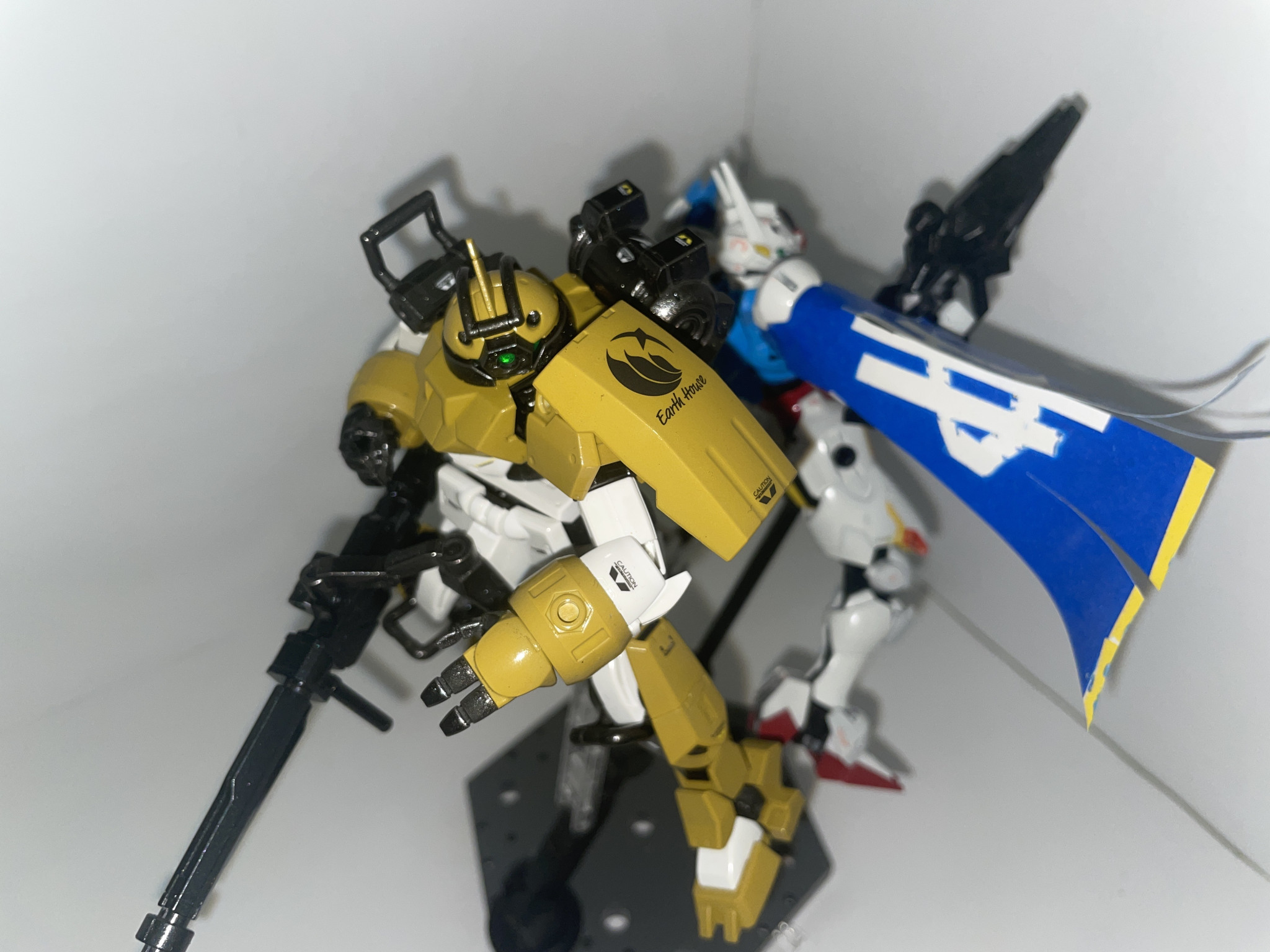 地球寮の都合的にかなり継ぎ接ぎな感じぽくマニピュレーターの装甲部分を左右対称にして、決闘を戦闘テーマにした水星の魔女の個人的な世界観に対する認知やイメージ的にマントをつけるべきだと思ったのですがよくよく考えたらチュチュ的に邪魔だから付けないだろうっと思って着けてません