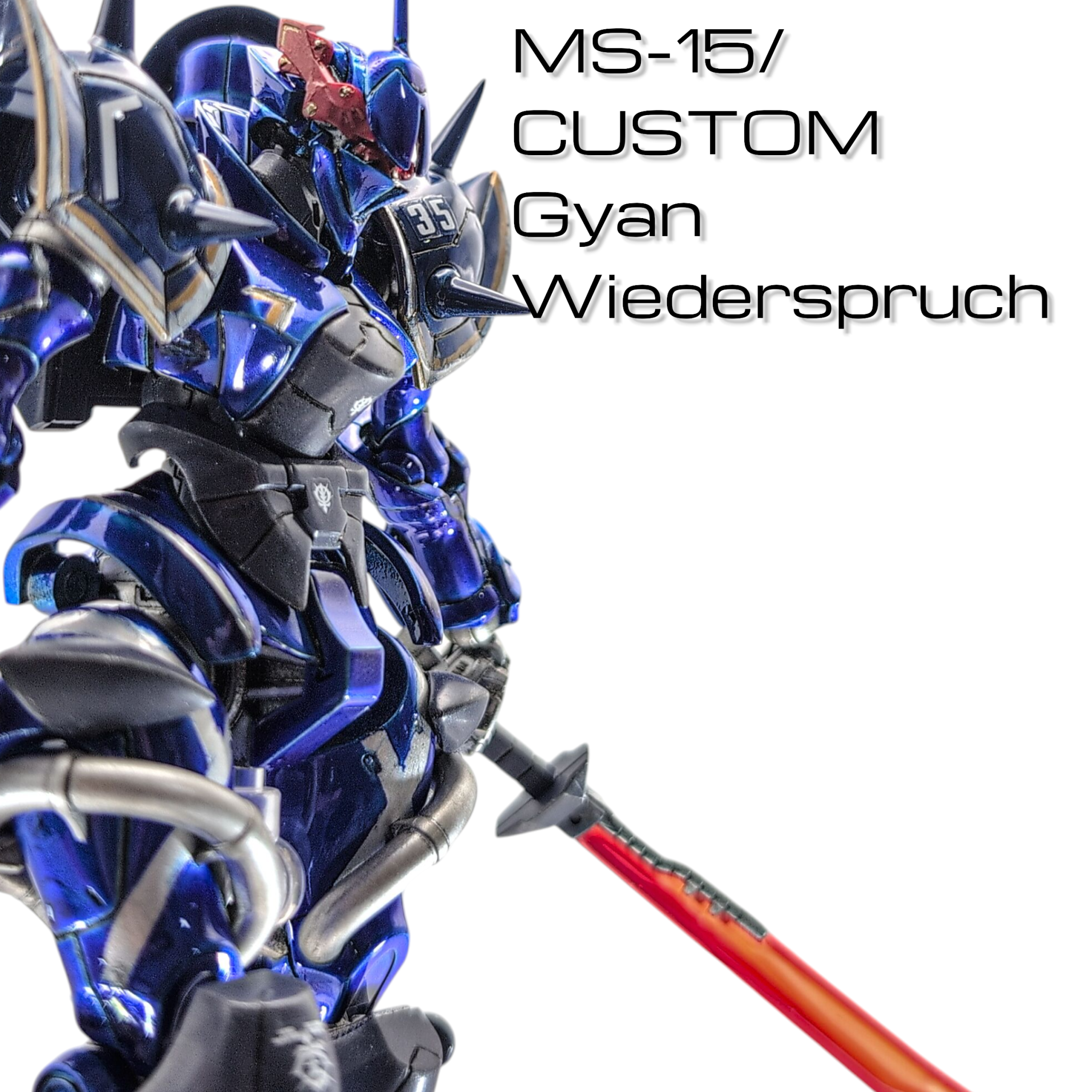 名前のヴィーダーシュプルフとはドイツ語で【矛盾】と言う意味で、後の写真にもありますが、大剣と盾に分離した武装になる姿を【矛盾】と言う言葉で表現できたらと思い、名付けました。あと脳内設定では、以前作成したMARQssssssX(マークシックス)とヌケニンザクの戦闘データを発展させてギャンに落とし込んだ設定にしておりまして、搭乗者の希望により、ガンダムタイプを倒すための機体をギャンに求めようとしたが、スペック不足でマークシックスの頭部を無理やり接続してギャンの外装で覆っている設定にしています。ちなみに試作段階のジークアクス世界線でのEXAMシステムを搭載している妄想です笑
