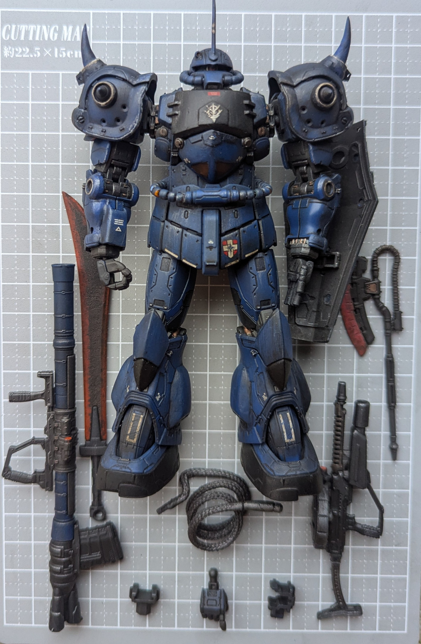 ディテールアップの素晴らしいですが、この濃いめのブルーがすごくいい色です。センスのかたまりのグフですね!