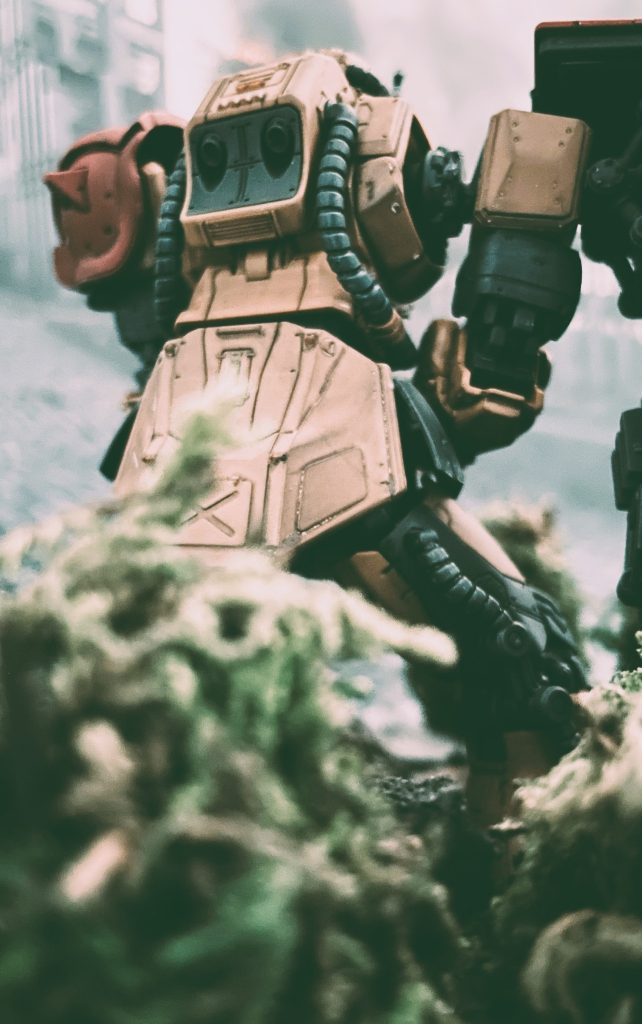マシンガンを構えるソラリ機です。腕が長い分両手持ちも自然な形で収まります。
