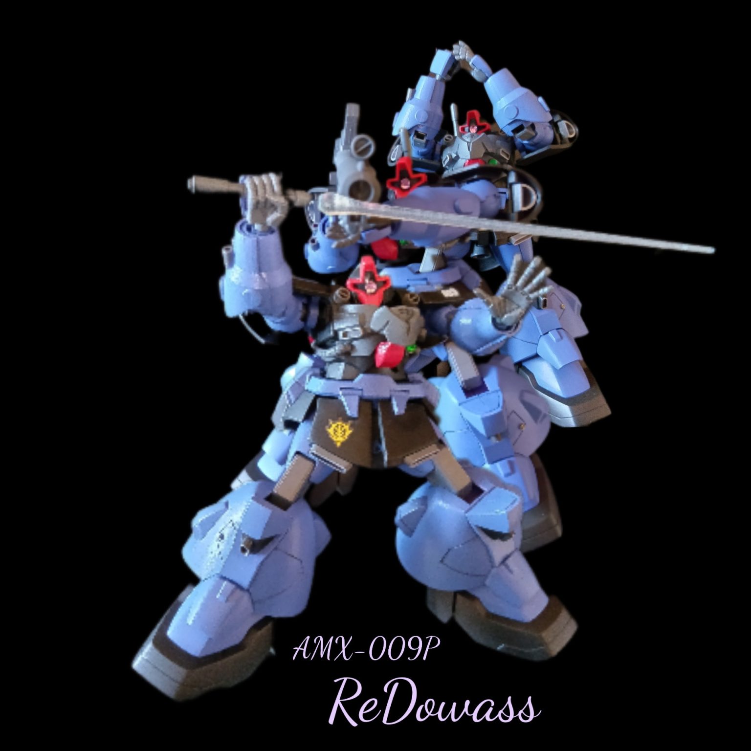 キットはドムトルーパーですが、私の拘りで宇宙世紀仕様です。ネーミングはリゲルグから『リドムでは変だしリドワッジもなぁ。ドワスで行こか』と言う安直な発想😅脚部可動域拡大、リアスカート可動化、フロントアーマー延長の他、各部ディテールを弄ってます。モノアイ可動化は諦めました。