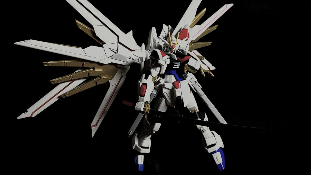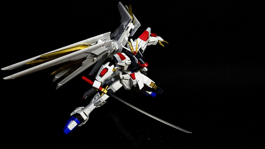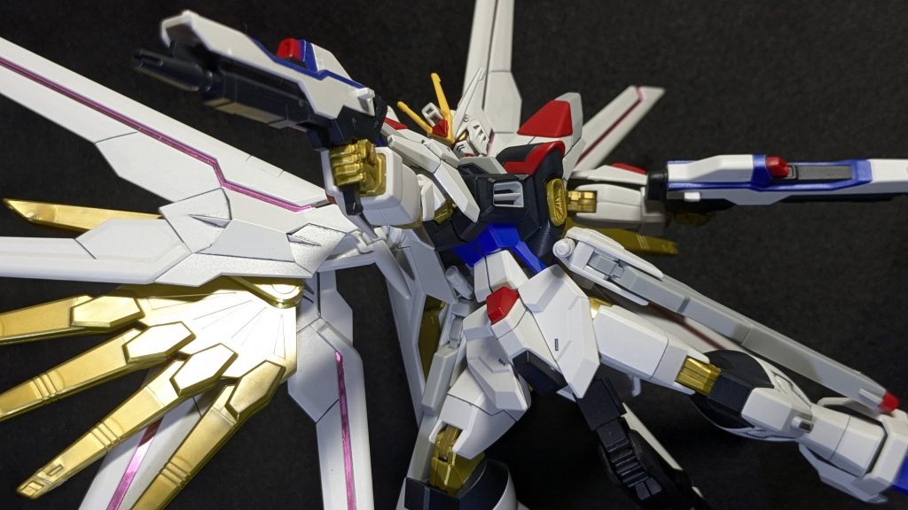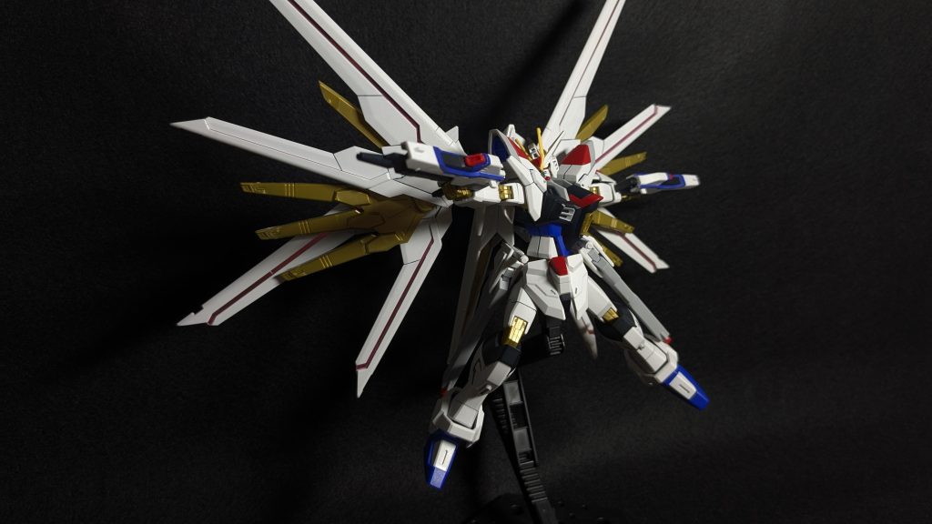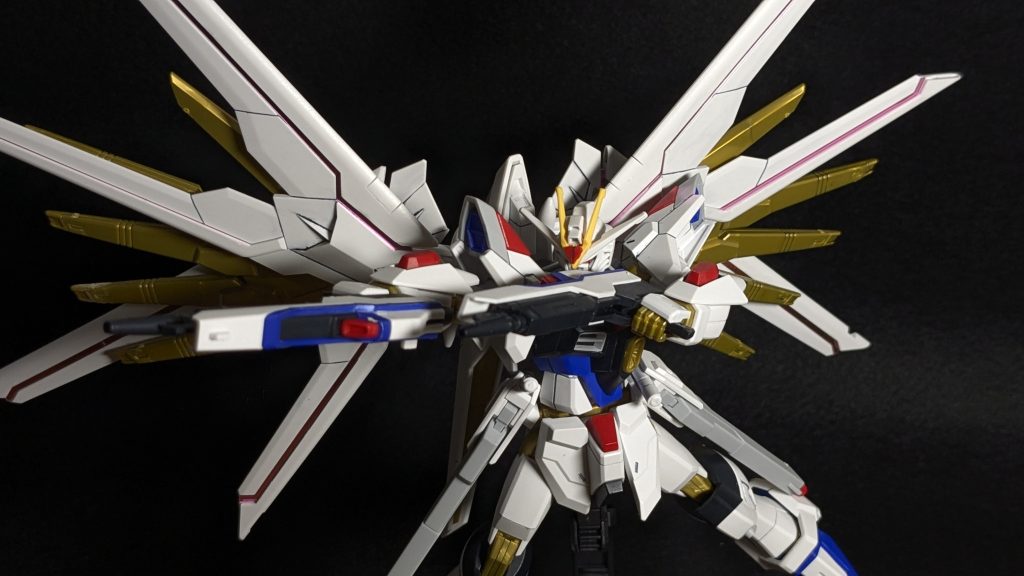 このように無理してビームライフルを連結させて作品のバランスを壊すよりも下の写真のように空いた空間を埋めたほうがいいのだと学びました