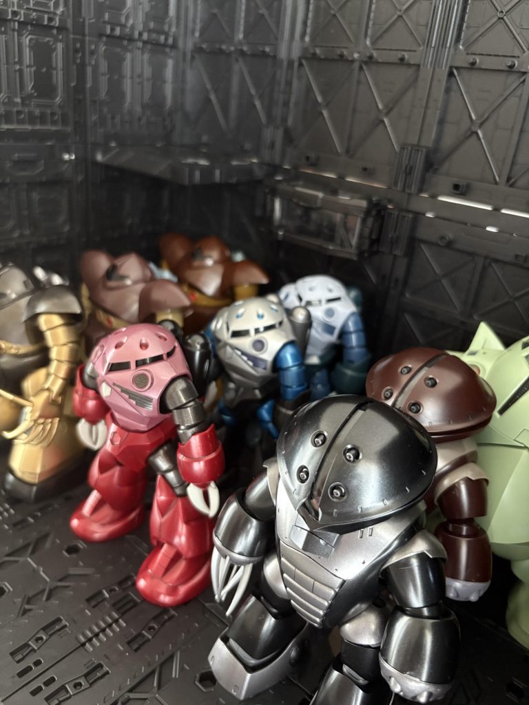 量産型ズゴック、アッガイ、ゴッグ、シャア専用ズゴックと、それぞれ部隊の1番機を仕上げてきました。水泳部員は、まだまだいますが、次は陸戦型の予定です。といいつつ、またすぐに水泳部に戻るかも😅