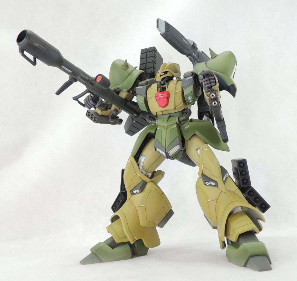 トーリス・リッターのハイパー・ナックル・バスター、ザク・ハーフキャノンのビッグ・ガン、ザク・デザートタイプの3連装ミサイル・ランチャー、ザクⅡF2のミサイル・ポッド等を流用し、トリントン基地襲撃時より重武装に仕上げました。