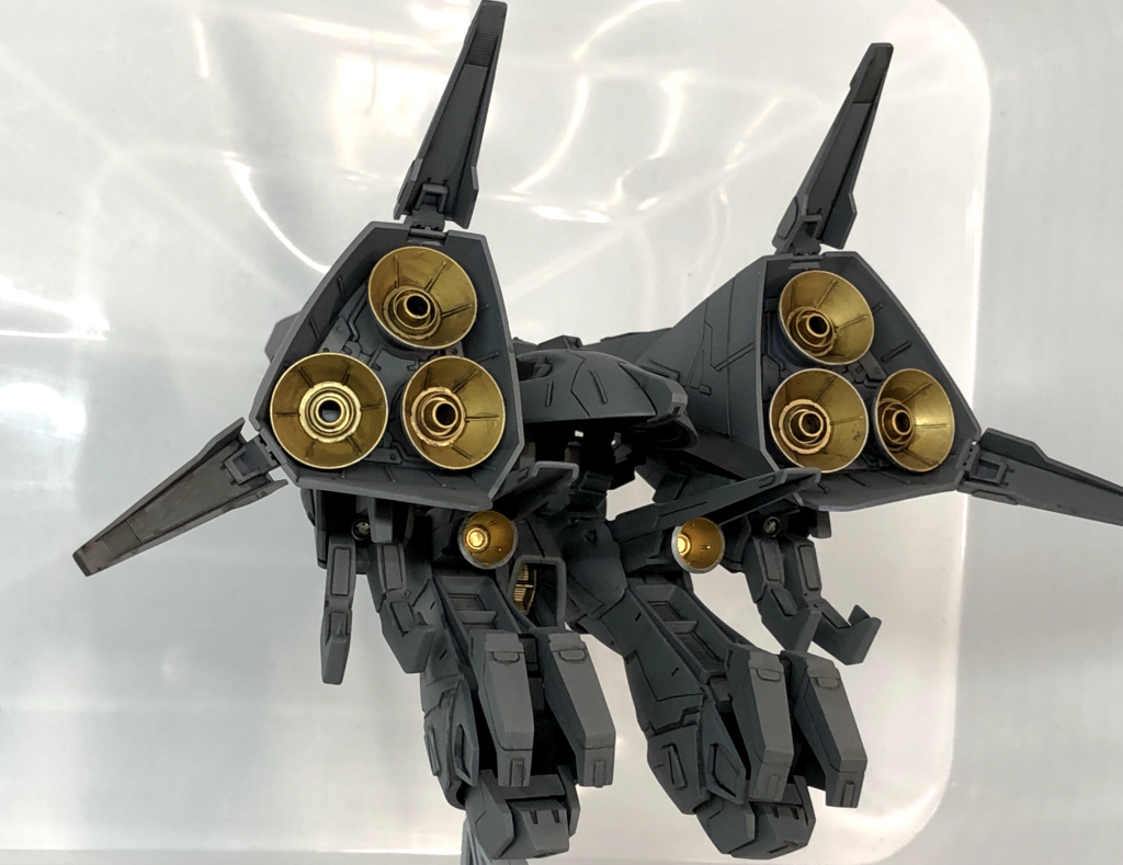 全身のグレー色にバーニアのゴールドが兵器感増々でカッコいいです!!