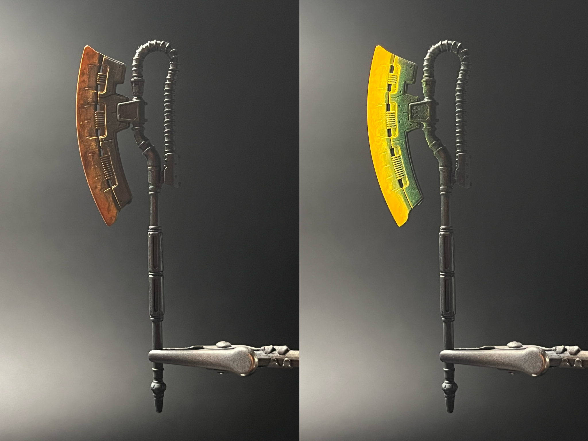 ブラックライトで赤熱するヒートホークも作ったんですけど出番無しになりました。