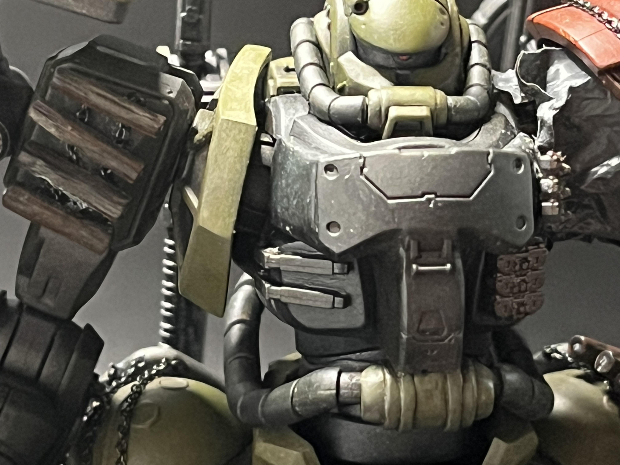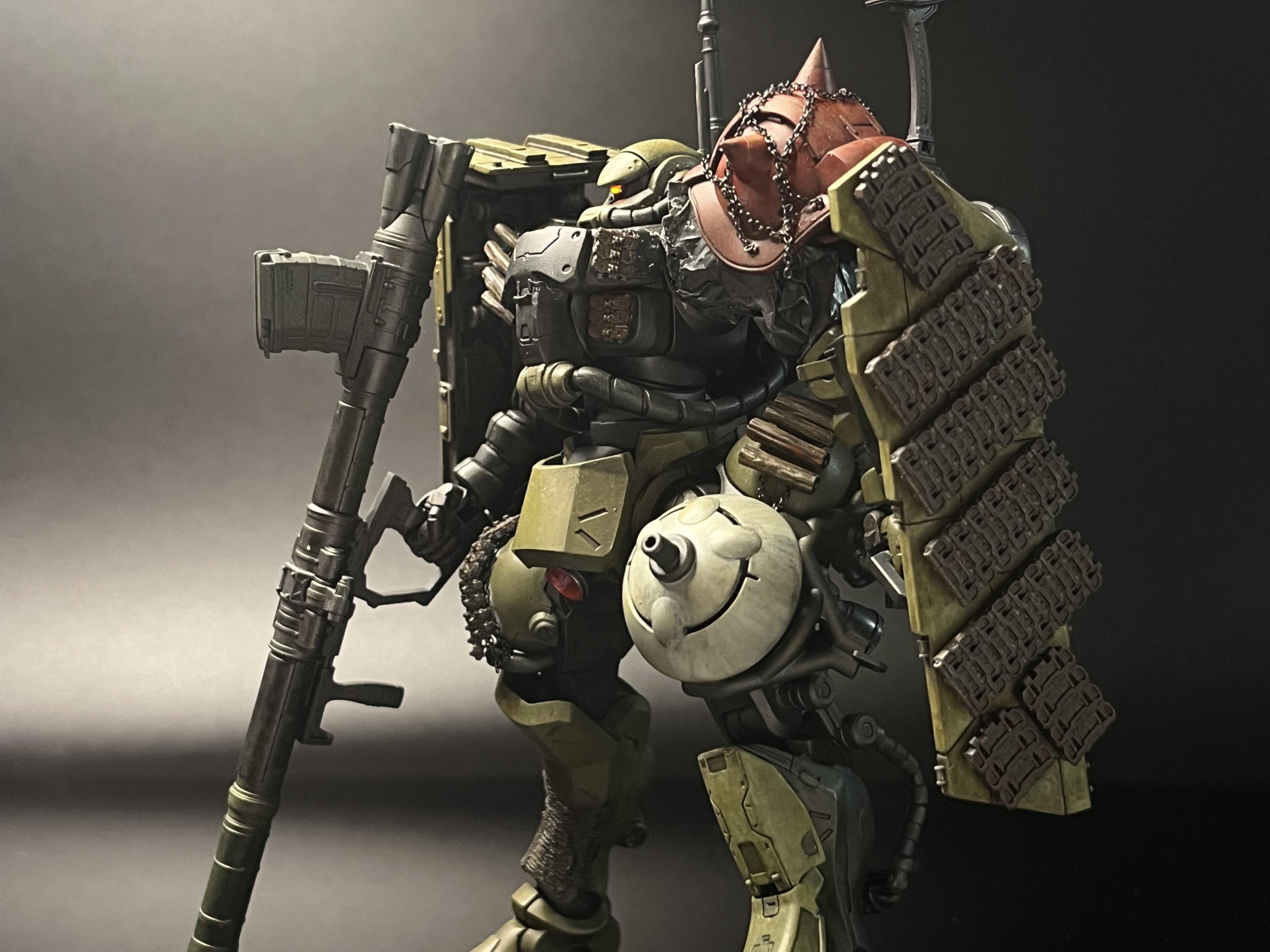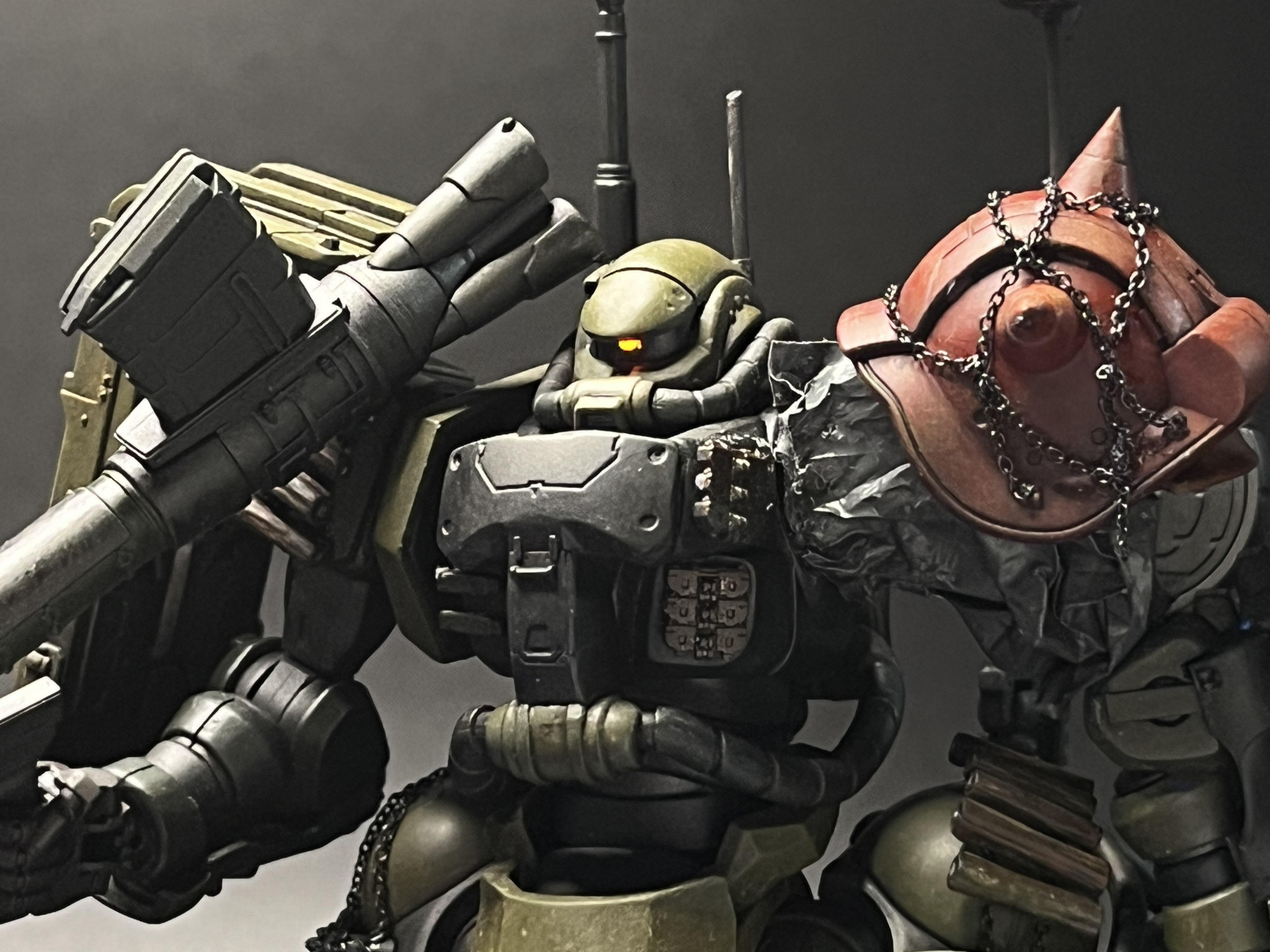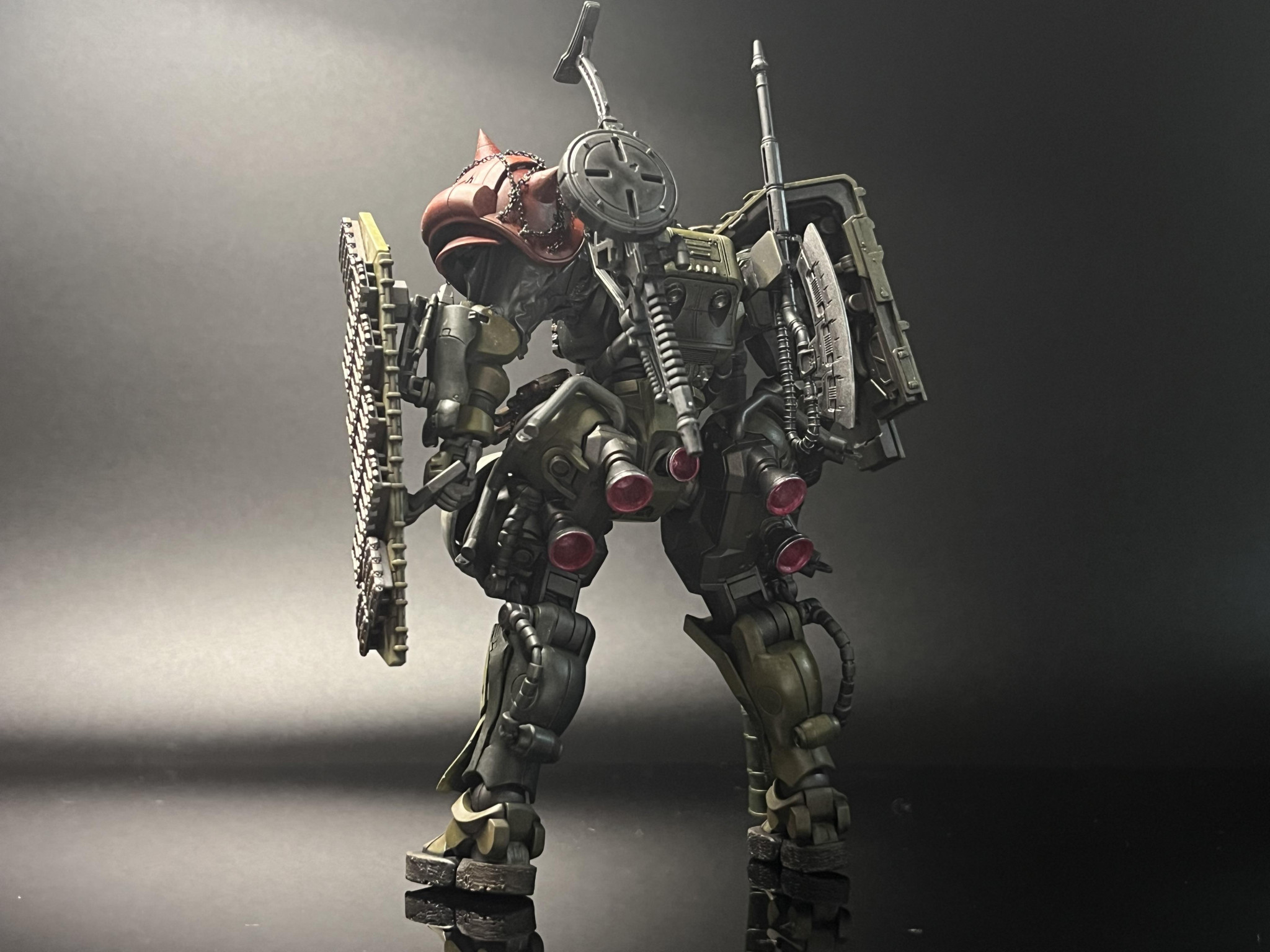 うおー!!男気あふれるザクですね!近藤版の向こう側から来たみたいですね。後ろ姿が、しぶすぎて、高倉健ですね…。