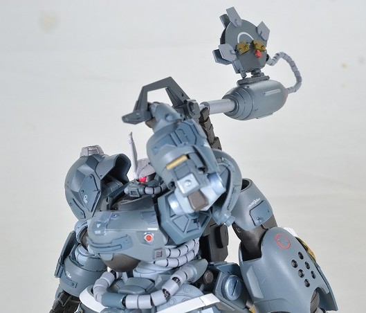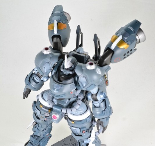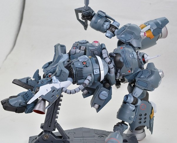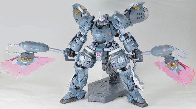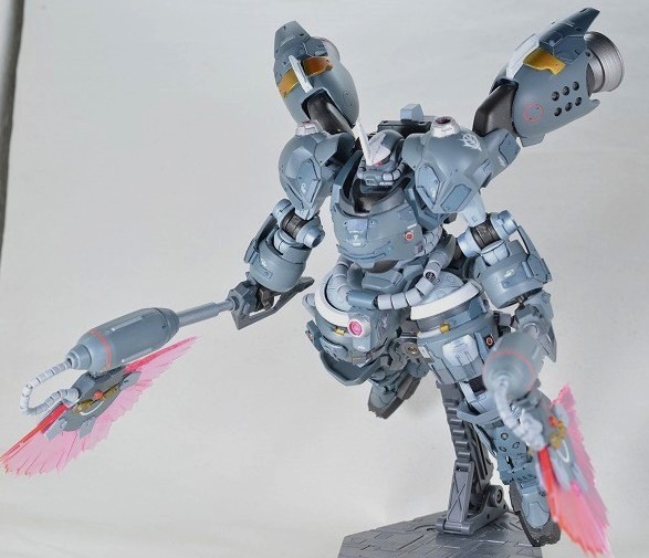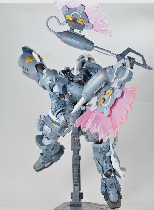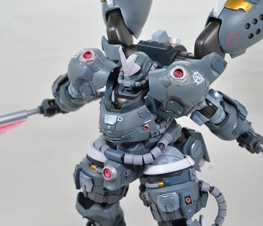武装は背面の大型ビームアックス2本のみ。ビームの出力が高く、MSの装甲なら大抵は切り裂くことが出来るという設定。ビームアックスはMSGエネルギーシールドとハイゴックのバックパックを組み合わせて作成。