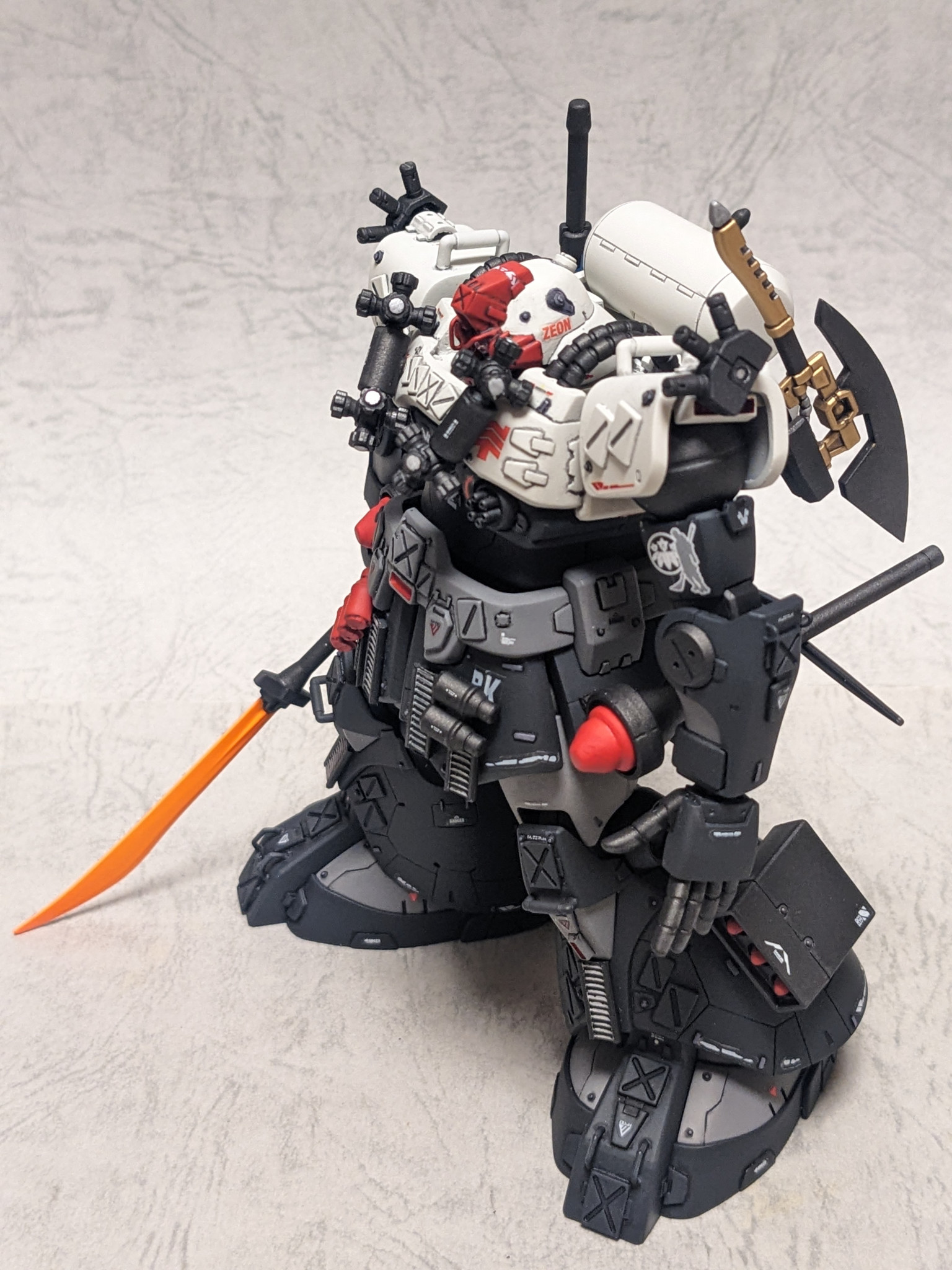 また、胸のジオンマーク及び階級章はプラモ狂四郎に登場した弁慶ドムが胸に弁慶と書いていたのをオマージュしてます。