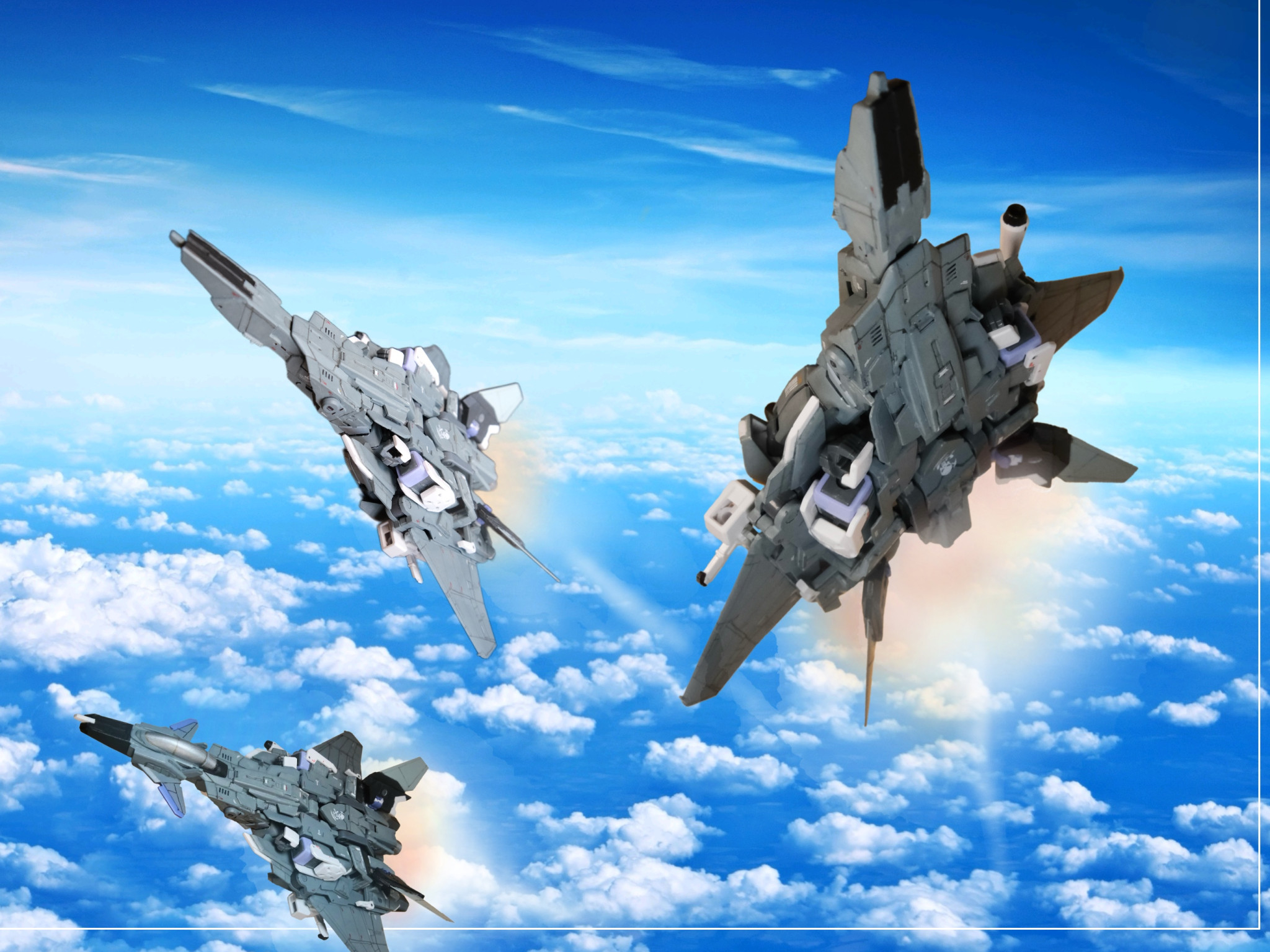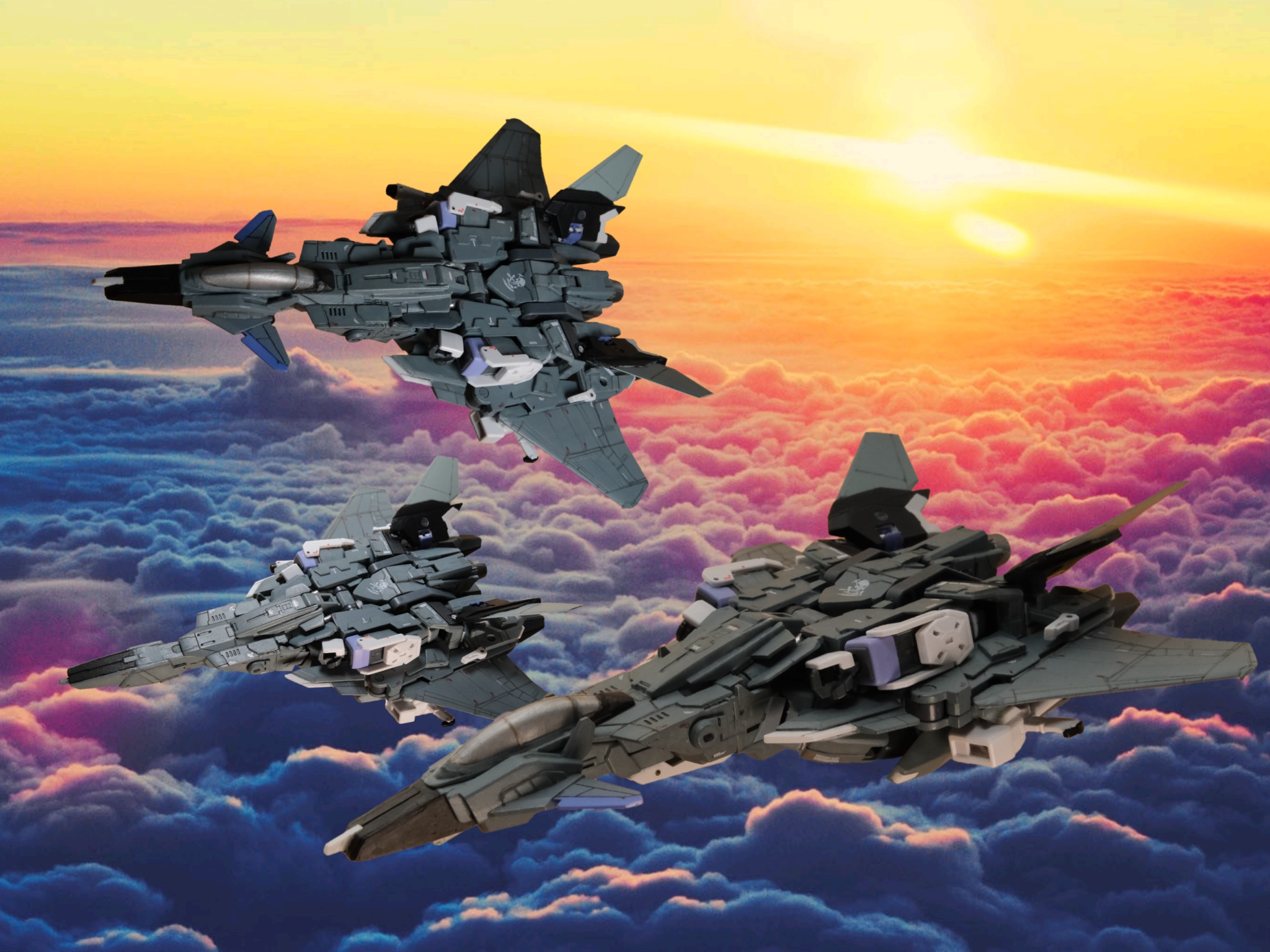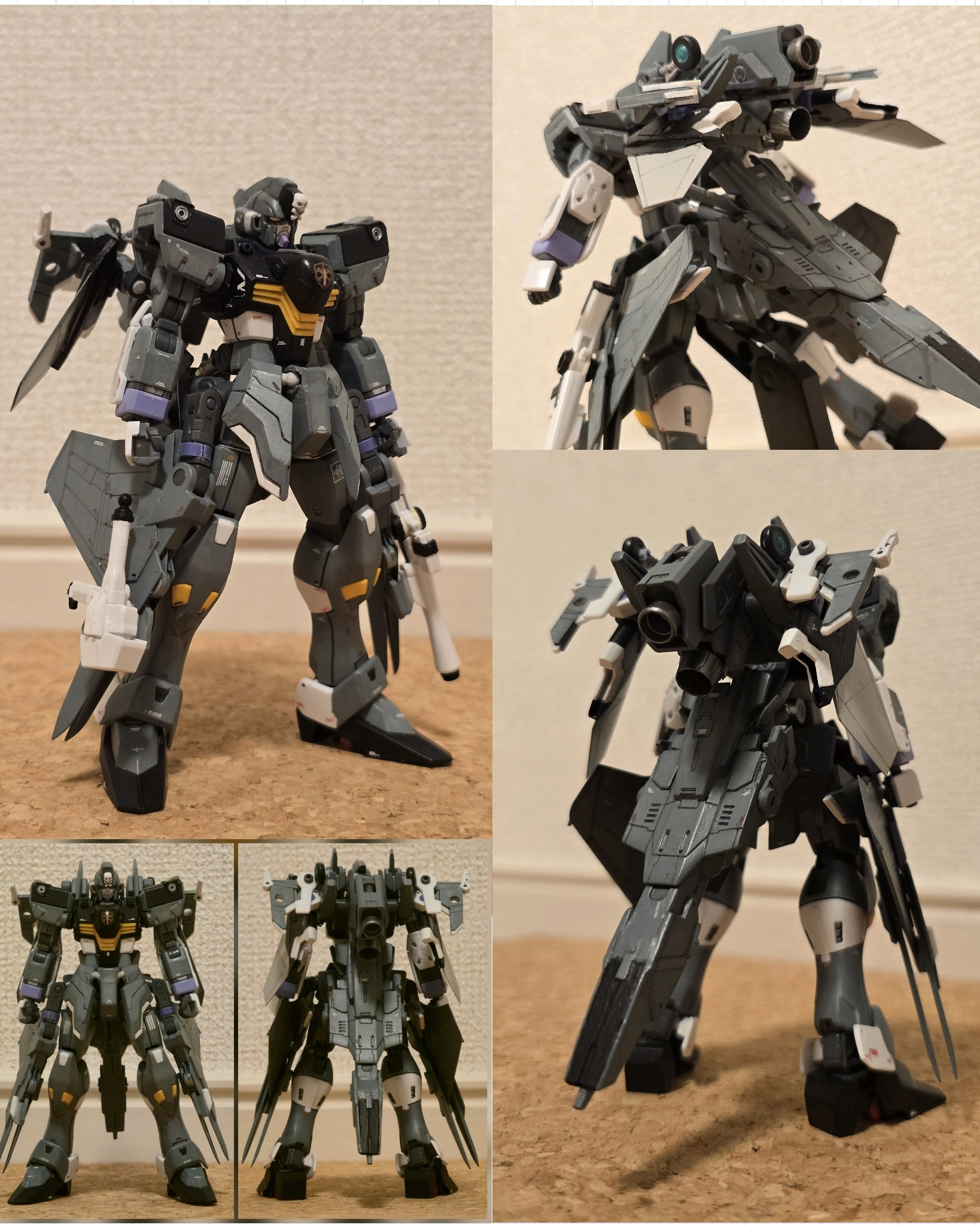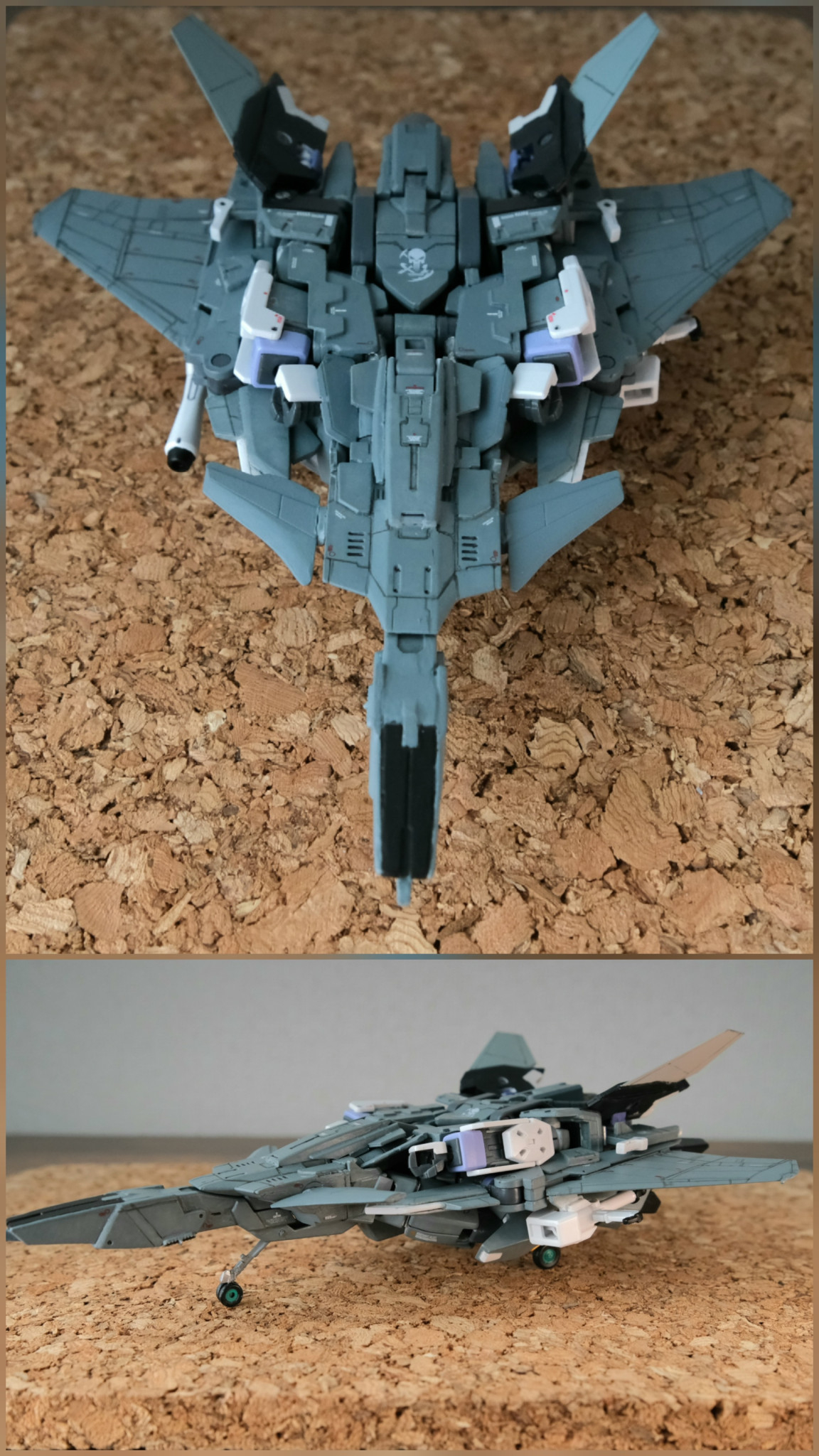 ファイター形態は昨年ハマってしまった戦闘機ゲームのエースコンバット7の影響を受け、作中に登場できそうなシルエットを目指して制作しました。完全変形以外にも、今回量産型ということで「~仕様」をパーツ組換えで表現きるようにしてみました。