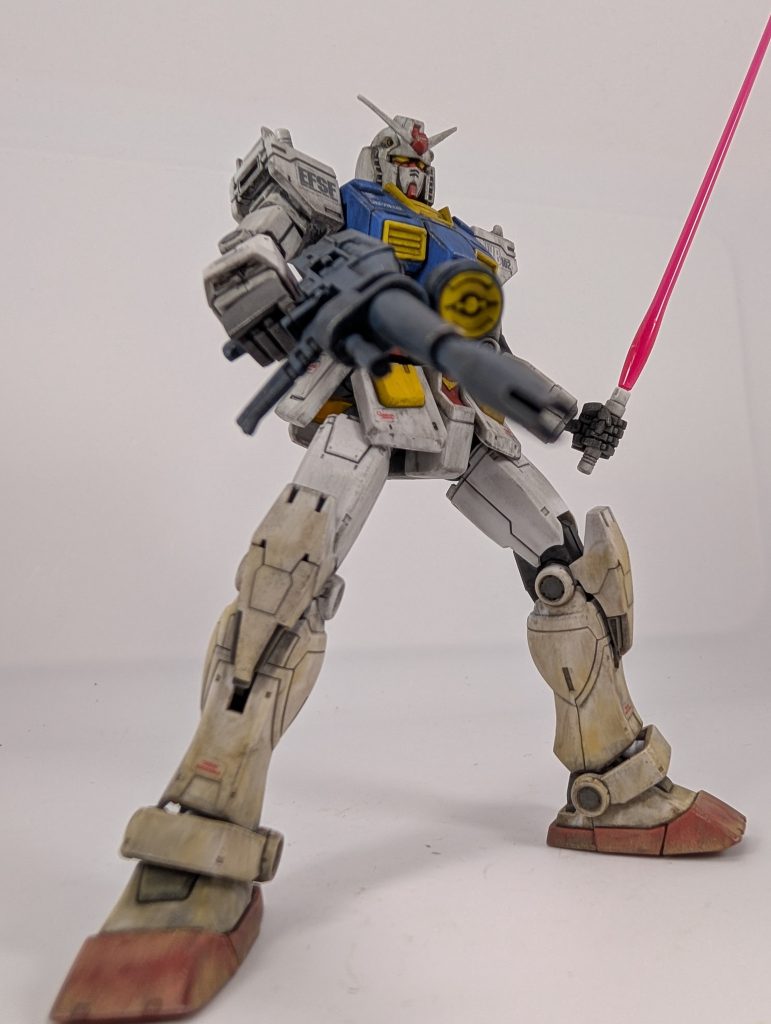 ウェザリングがバッチリ決まった『歴戦のRX-78-2』…めっちゃカッコいいです🤣足元の砂汚れが絶妙です😄私もこのキット大好きです!プロポーションとディテールが、好みドンピシャなんですよねー😁素晴らしい作品をありがとうございます!
