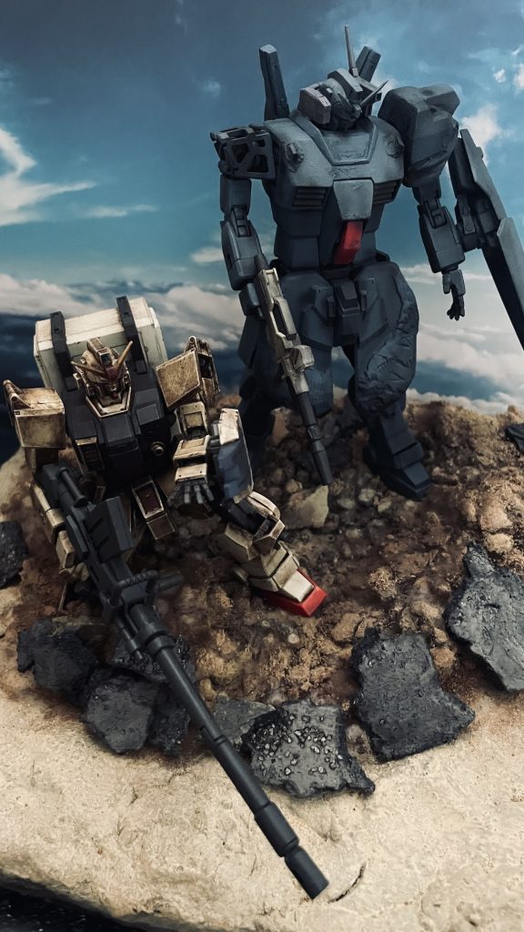 陸戦型ガンダムとのツーショットです。グレーを被せる前の状態です。