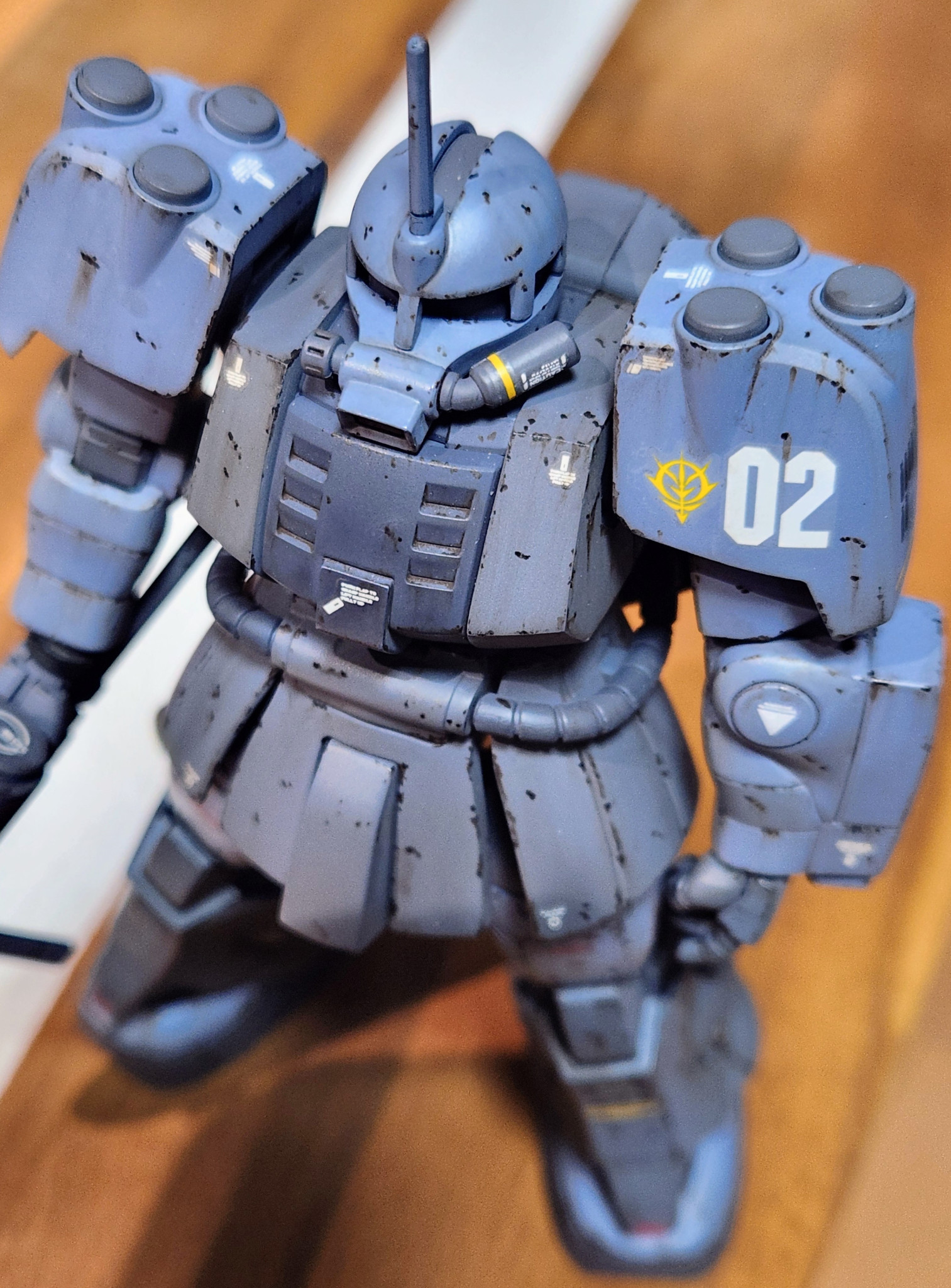 コメントありがとうございます!褒めてもらえると、モチベーション向上するので嬉しいです。ウェザリングはまだまだ勉強中なので、拡大されても恥ずかしくないような、色々な表現を学んでいきたいです。ザクマリナー特有のプロポーション、凄く格好良いですよね。