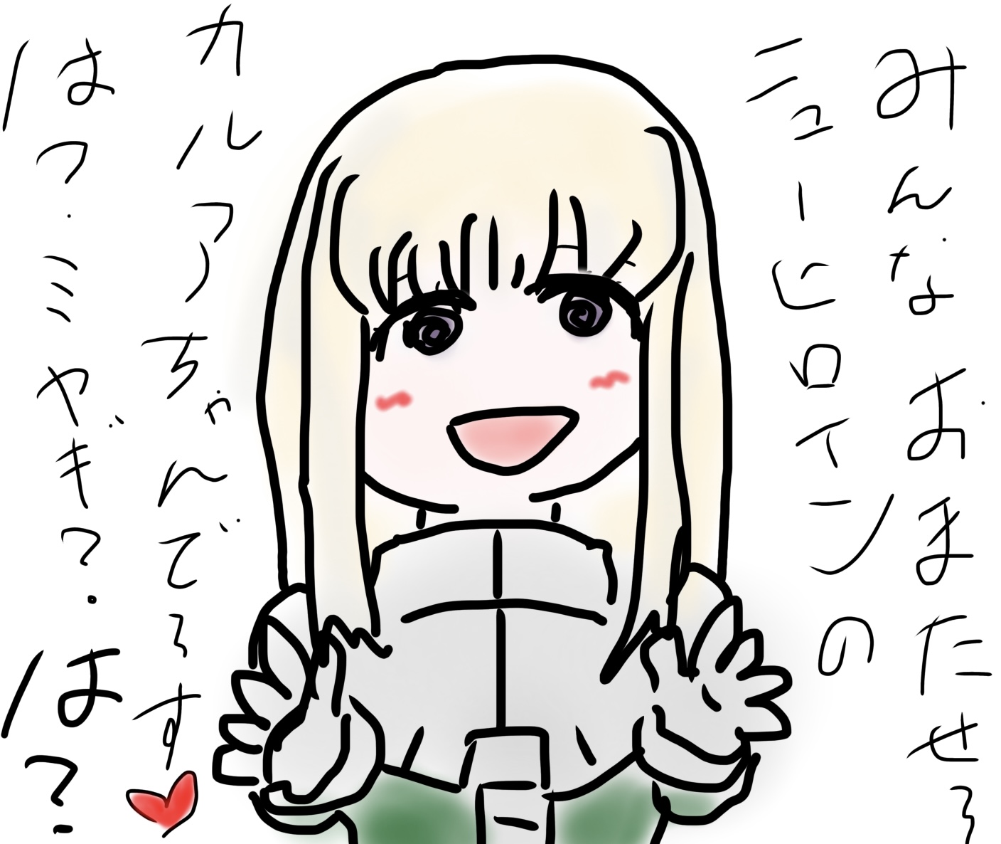ニューヒロイン、ミヤギとは違ったキャラクターにしたいとは思っていますが、はて、どうなることやら……ネジが、抜けている、というか、なんというか、なので笑