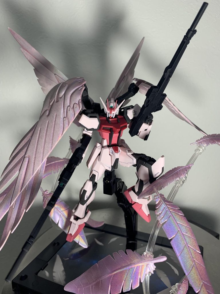白と赤を基調とした機体に輝く翼を与えることで、カガリ・ユラ・アスハを“オーブの守護天使”として際立たせる狙いがある。