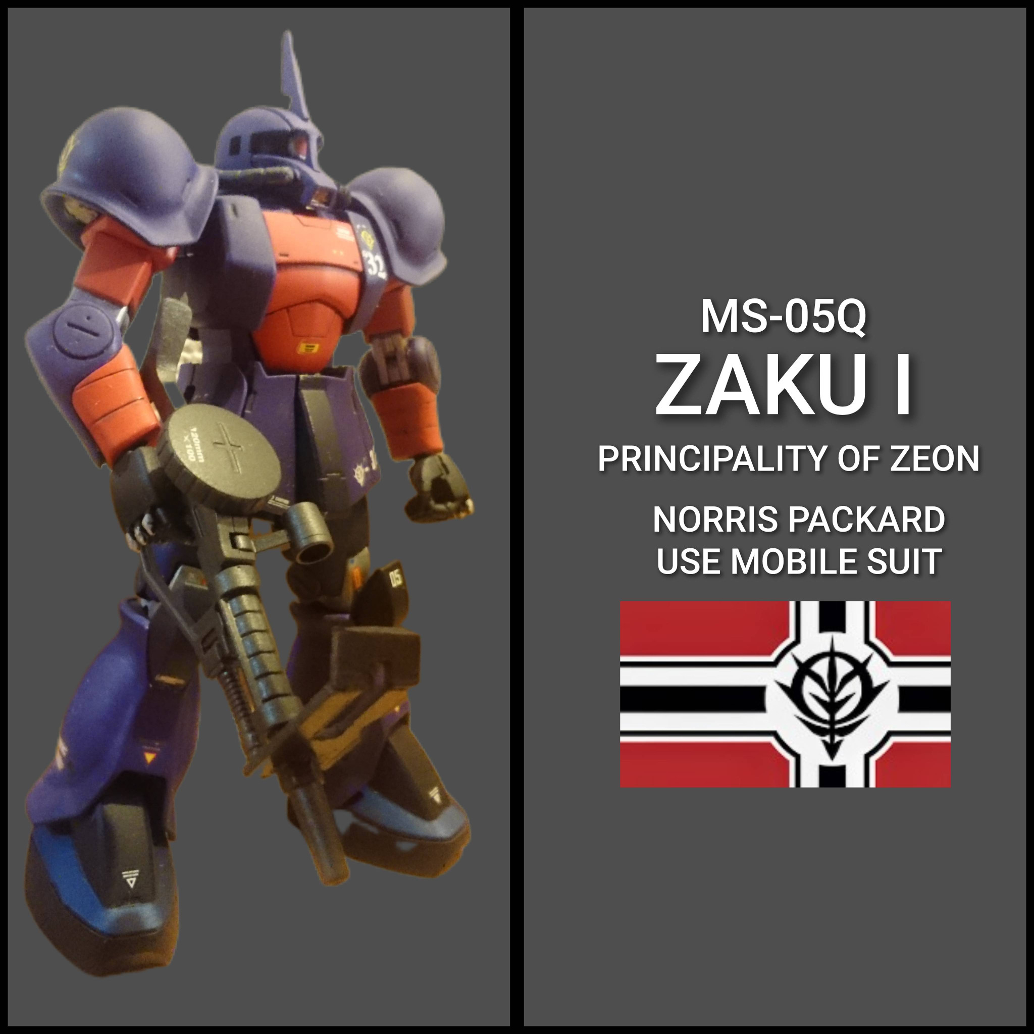 ノリスといえばグフカスタムですが、設定ではQ型と呼ばれるザクIに搭乗しています。武人ノリス合ったナックルやパーソナルカラーで仕上げました。