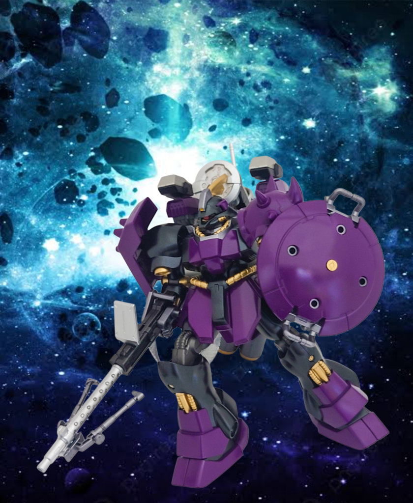 今回は、HGUC ギラドーガを自分なりにアレンジしてオリジナルのエースパイロット機風に仕上げてみました。機体のカラーリングは毒々しい感じの配色にし、バックパックや武装はオリジナリティーを追及してみました。