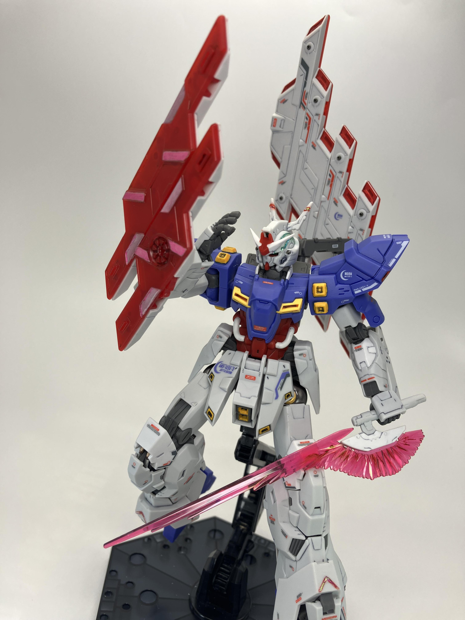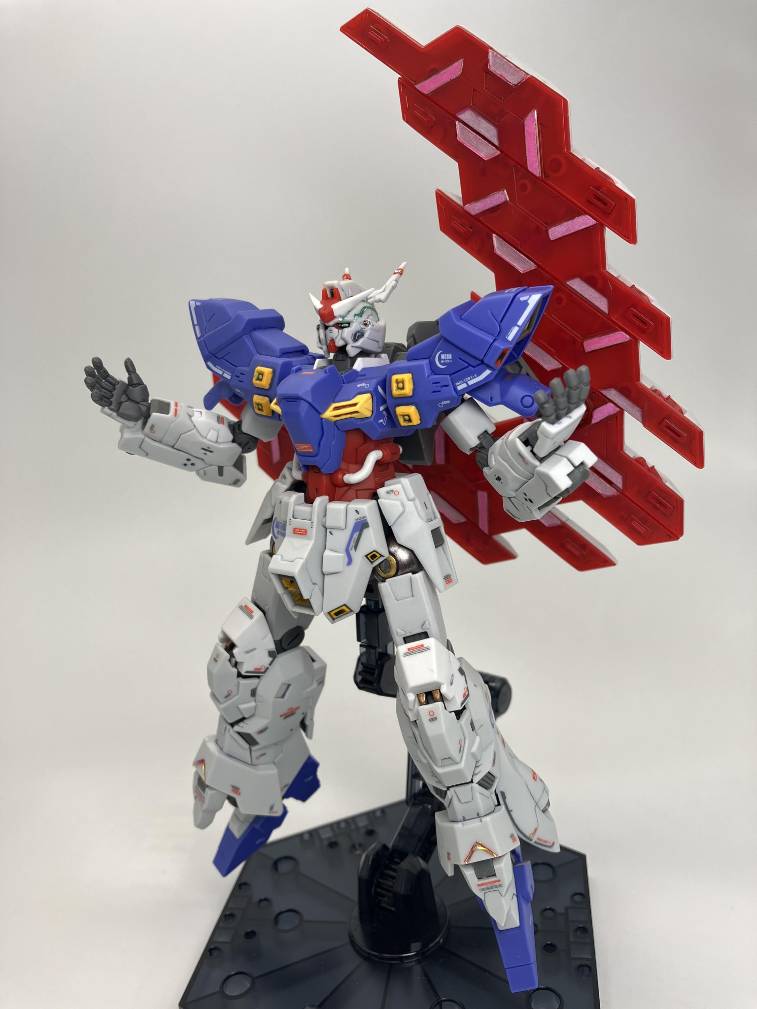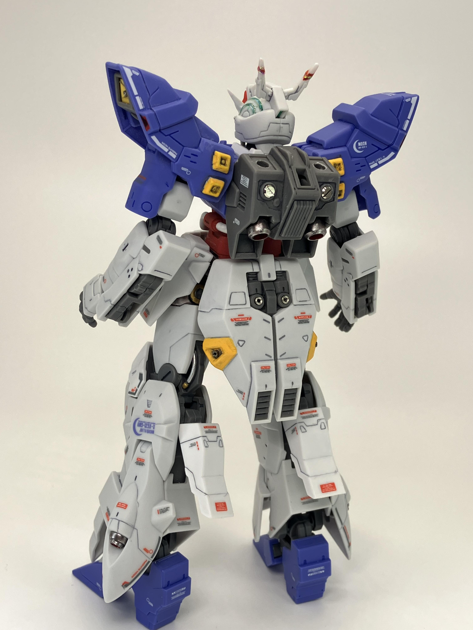 HGUCムーンガンダム、成形色に一部塗装からスミ入れ→デカールから、トップコートの簡単フィニッシュに、メタルパーツやレジン液でちょいプラス🌙🥳