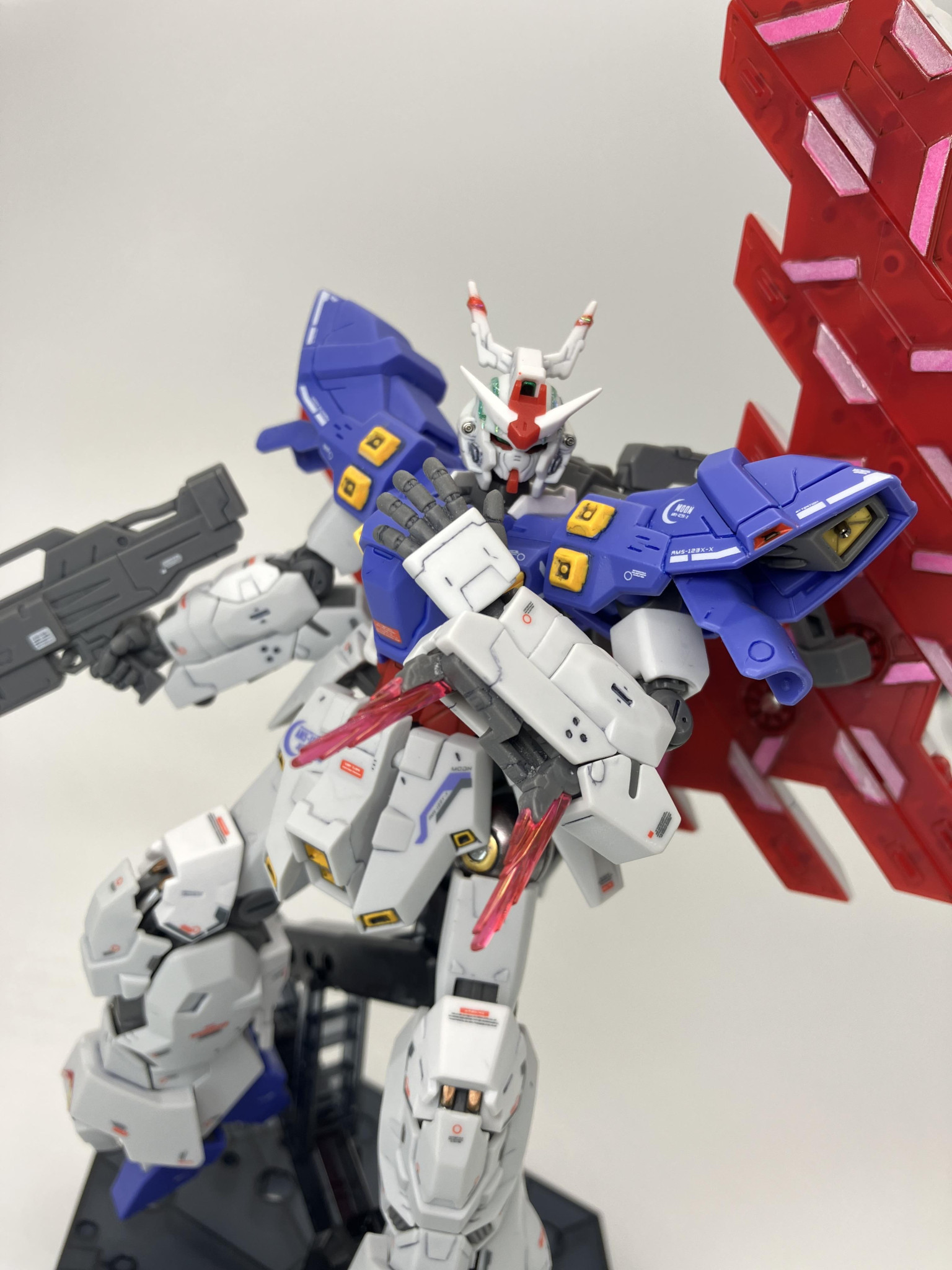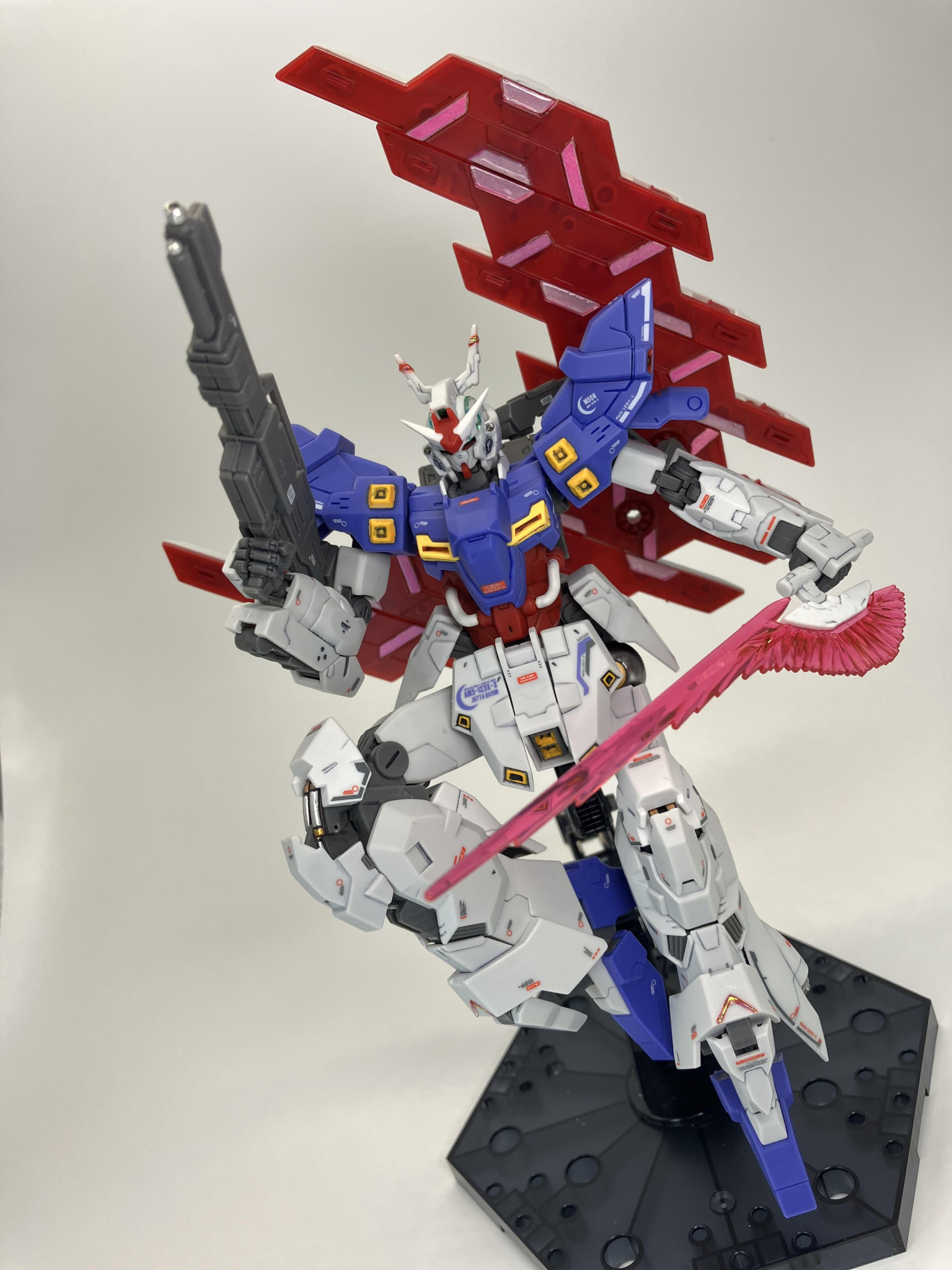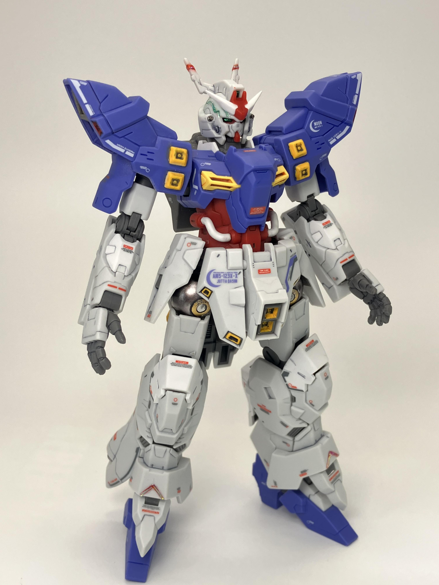 HGUCムーンガンダム、成形色に一部塗装からスミ入れ→デカールから、トップコートの簡単フィニッシュに、メタルパーツやレジン液でちょいプラス🌙🥳