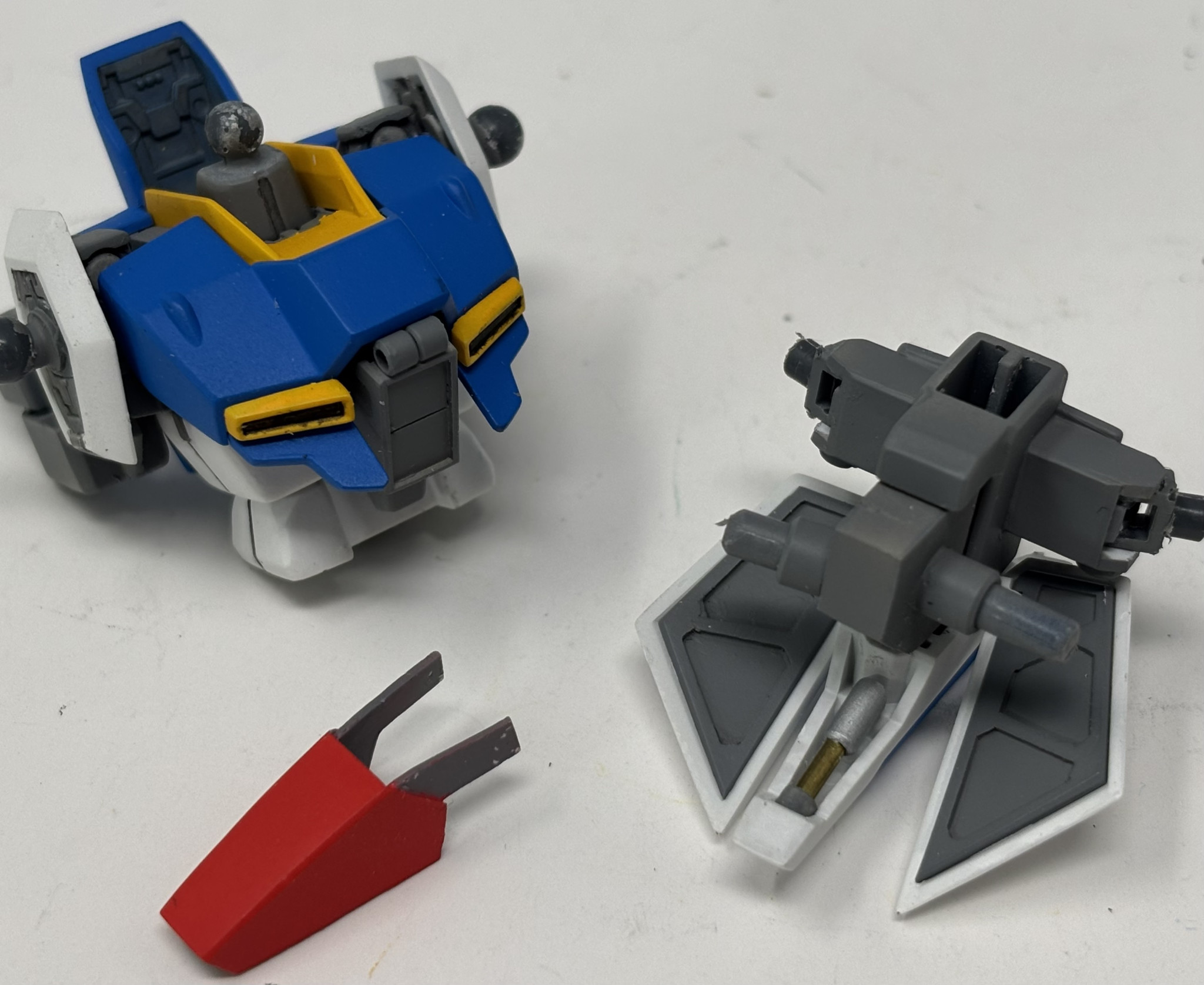 設定にはこの切り欠きが存在しないので、切り欠きがあるWR形態用と切り欠きが無いMS形態用のパーツをそれぞれスクラッチしました。