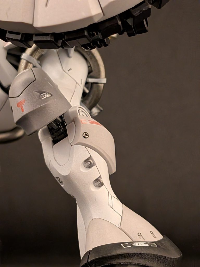 改修はバックパックのバーニアが小さい気がしたので大きくしました。後は、数カ所に金属パーツを使用、パネルラインの追加と白系での色分けに力を入れて作成しました。