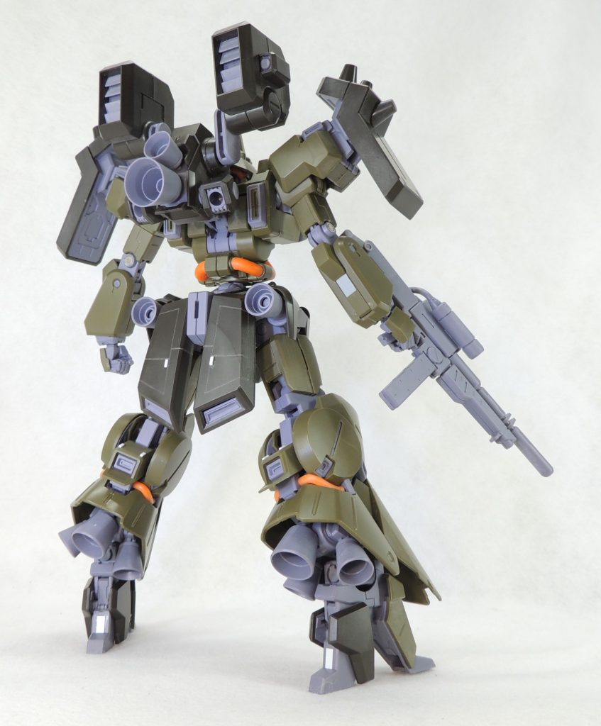 キット指定のオリーブドラブやブラックグリーンを基調としたカラーは、色数が少ないコンサバティブな手法のためミリタリー感が強く、ザクやギラ・ドーガの系譜を継ぐ機体としてふさわしいと思います。