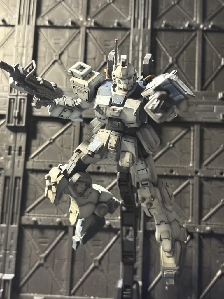 製作に当たっての設定ですが、コジマ大隊所属の08小隊ですが、大破した陸ガンを改修する訳ですが、どう考えてもあの基地のインフラでは大掛かりな改修には限界があると思うので、手作り感が残る様な制作を心掛けましたー😄