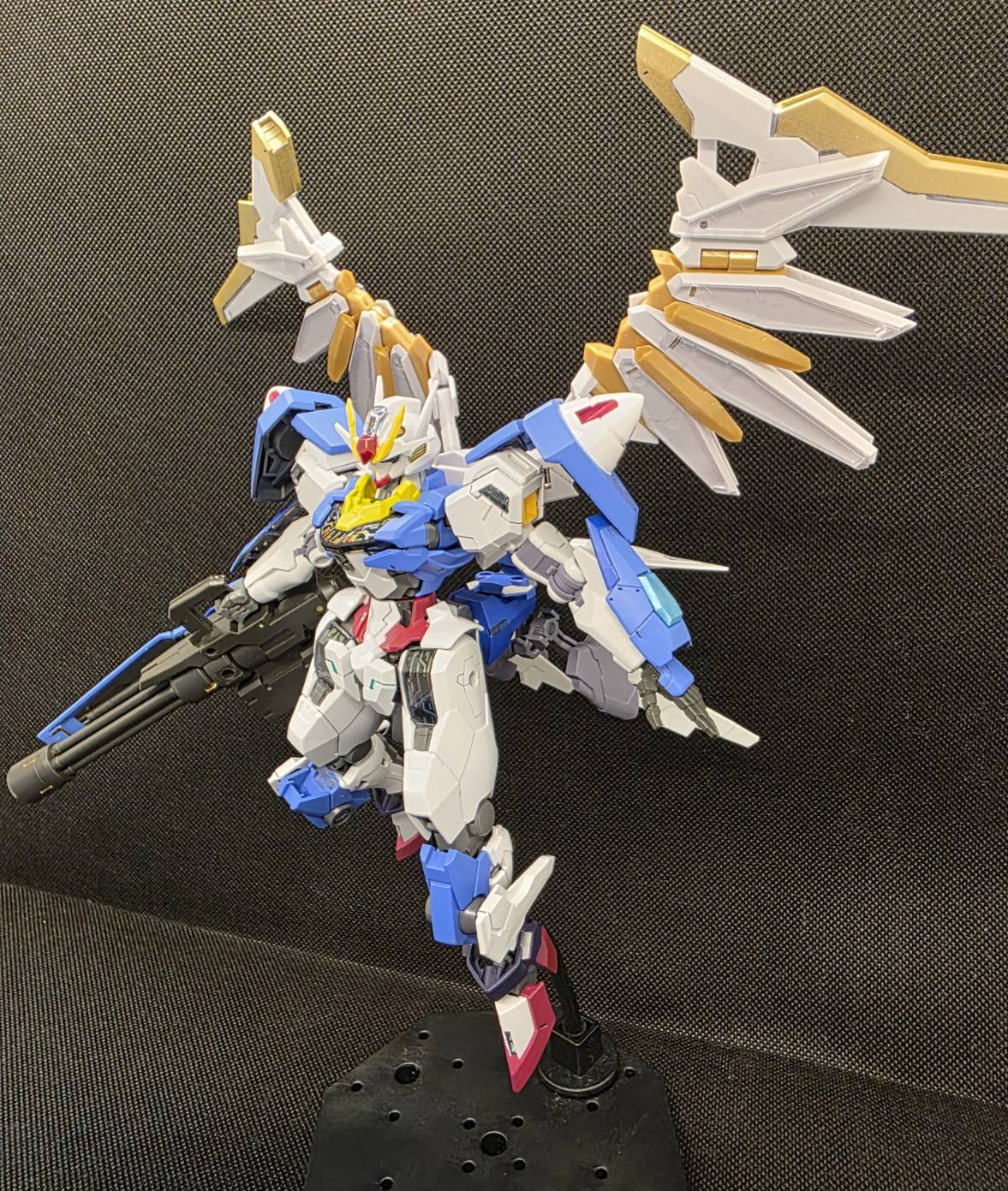 ウイングユニットは一部を取り外して手持ち武器になり他にもビームガトリングと腰のショートブレード。胸部の高出力ビーム砲