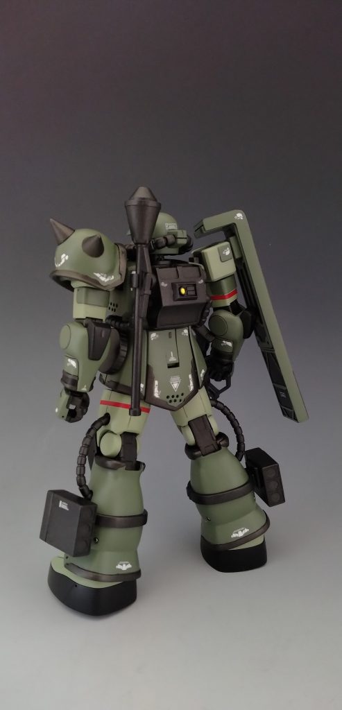 素晴らしいカラーリングで、シンプルな武装。そして相変わらず素晴らしいディティール追加…ザク極めてますね(zaku-kao2)ほんと参考になりますね