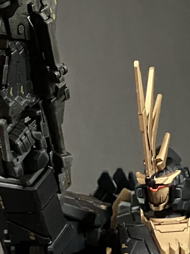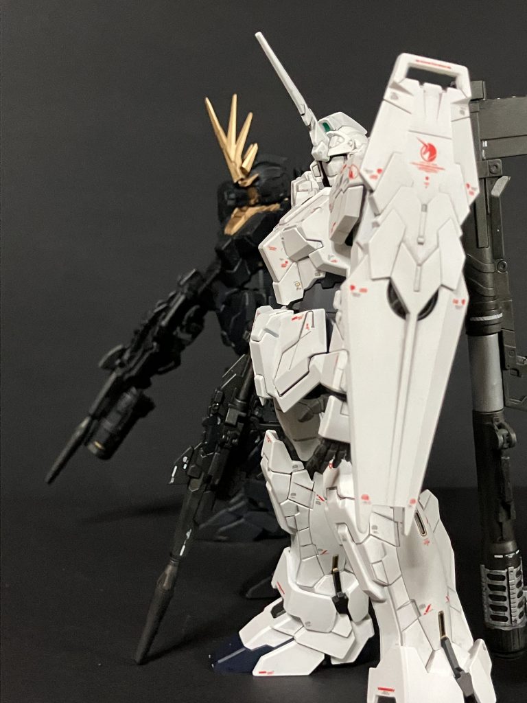 2025年9月完成 HGUC バンシィノルン ユニコーンモードです。アームドアーマーXCはシールではなくプラ板で自作しました。全塗装、艶消しトップコート仕上げ。RG用デカールを使用。墨入れは控えめに実施しています。
