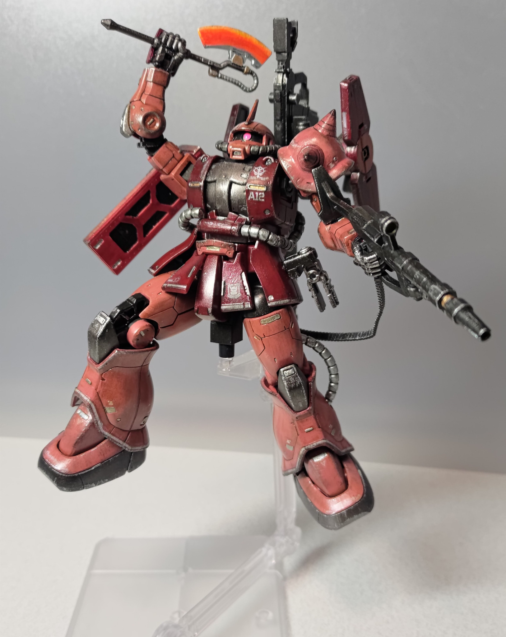 ザクを作るのって初めてだったので、モノアイ加工やヒートホークの赤熱表現などチャレンジしてみました。
