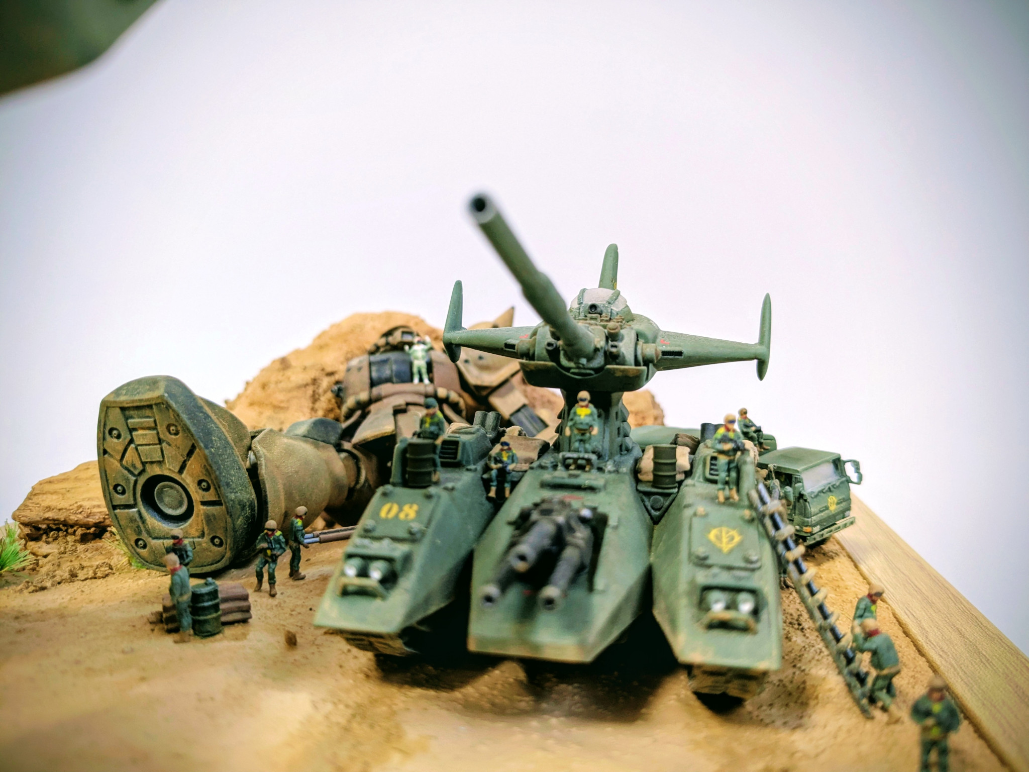 前にジオラマをガンスタでやったんですか、不完全燃焼だったので同じコンセプトで横土台から縦に変更してカッコいいレイアウトになったと思いますが、前の土台の方が出来は良かったと思います…。