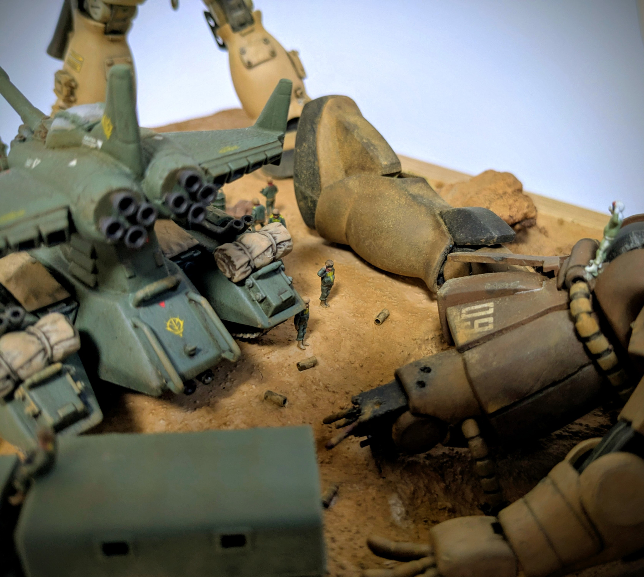 コメント失礼します。素晴らしいジオラマです!ザクだけでなく足元のジオン兵のフィギュアもリアリティあふれています😆入賞おめでとうございます🎉