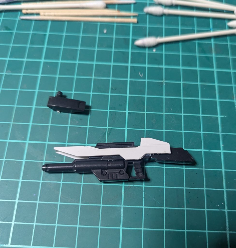 鉄血MSらしく大型武器を振りまわすので左手に銃火器などを持つのが難しいので腕部ビームキャノンを装備しました