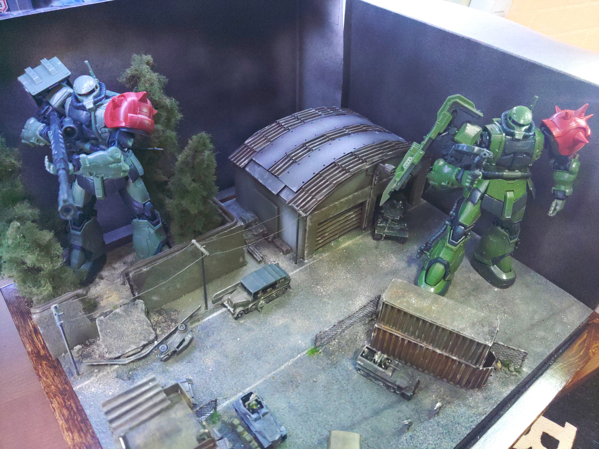 イメージはジオン軍の基地に、森をかき分けてガンダムが襲撃した所ってイメージです😊